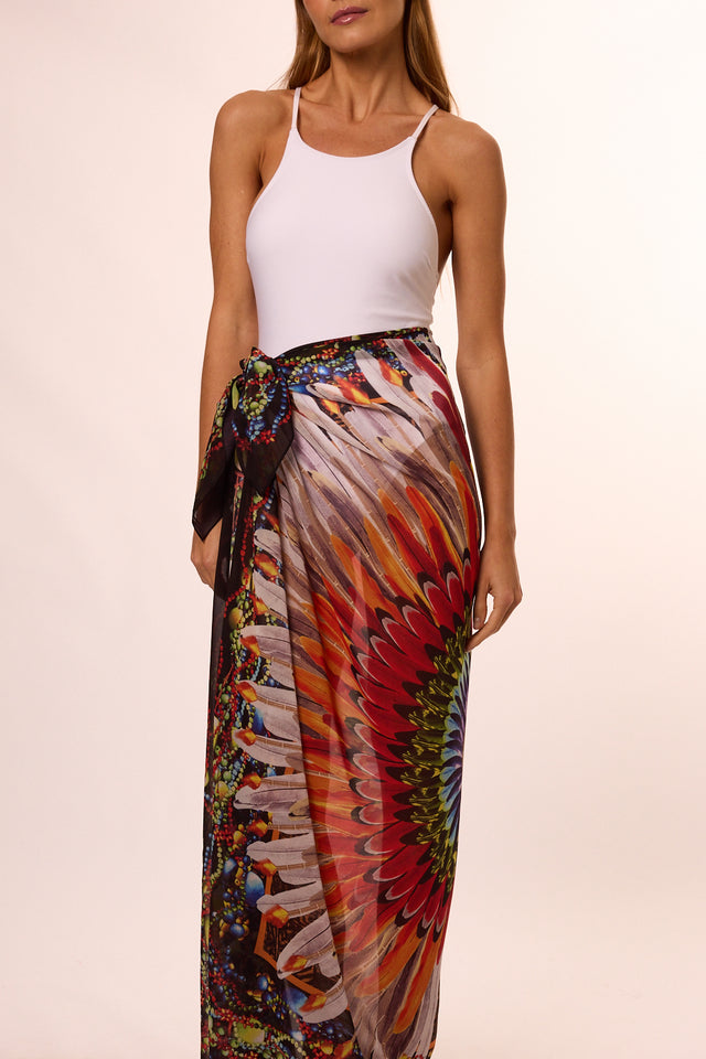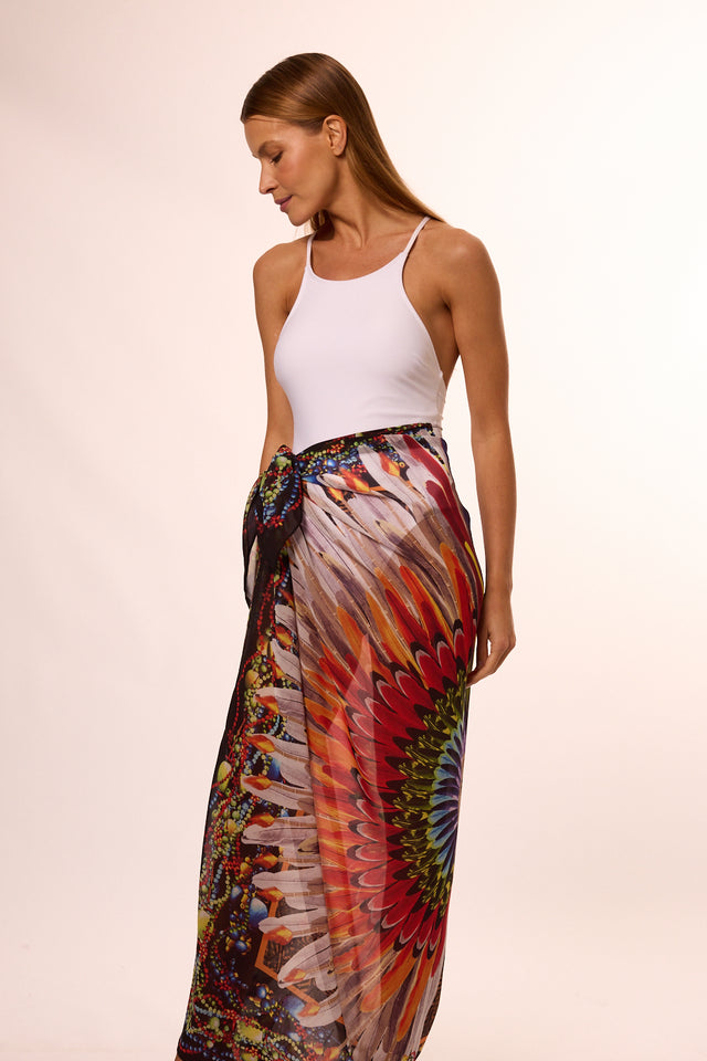 Pareô Cocar em mousseline de poliéster | 130x130cm
