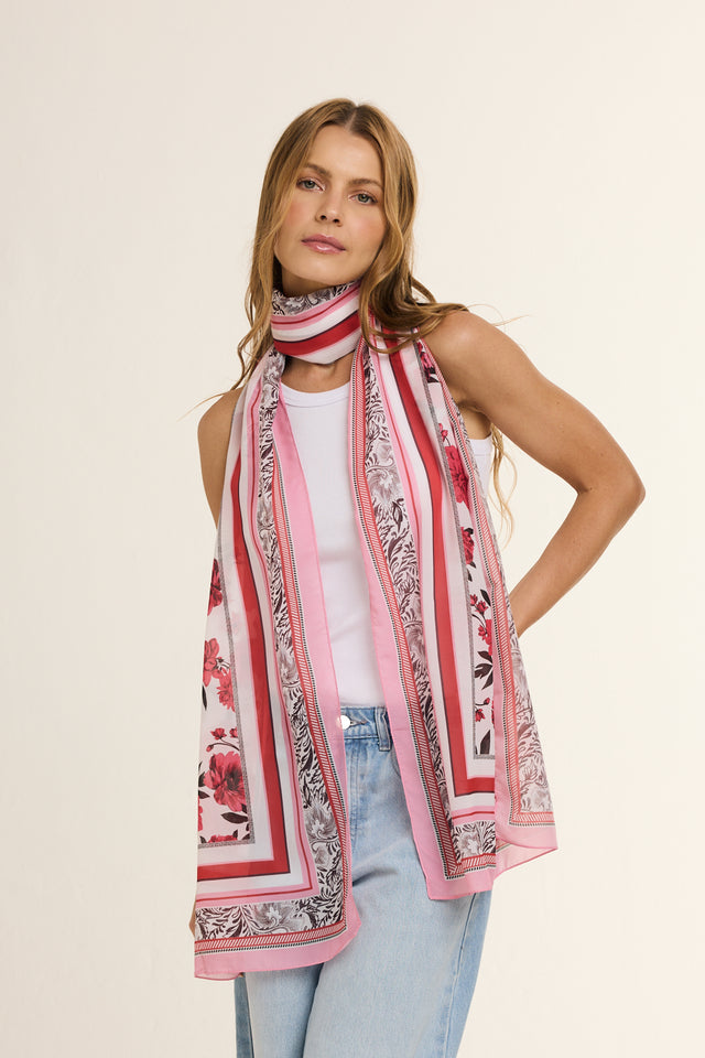 Echarpe Peony em mousseline de poliéster | 45x210cm