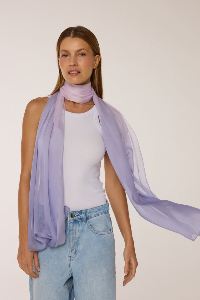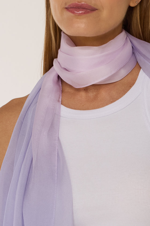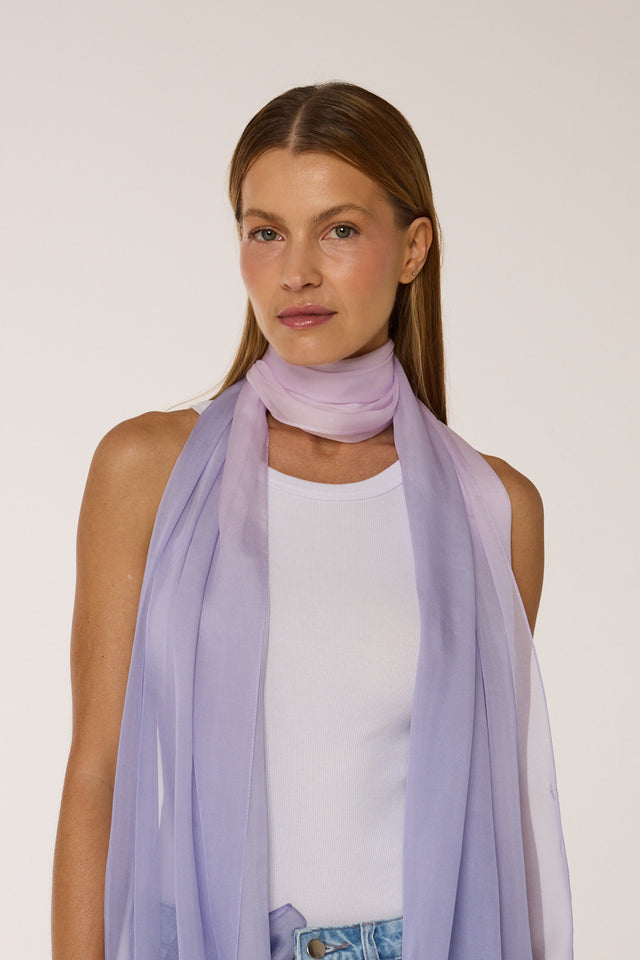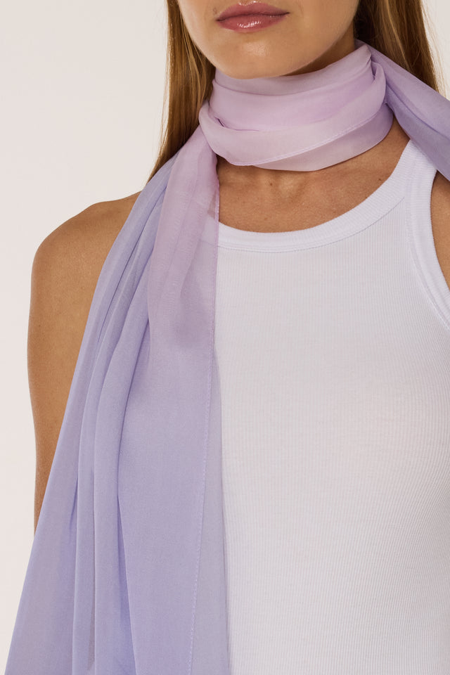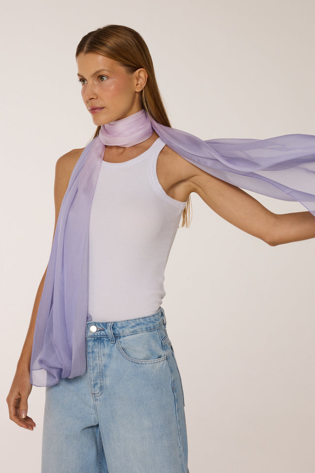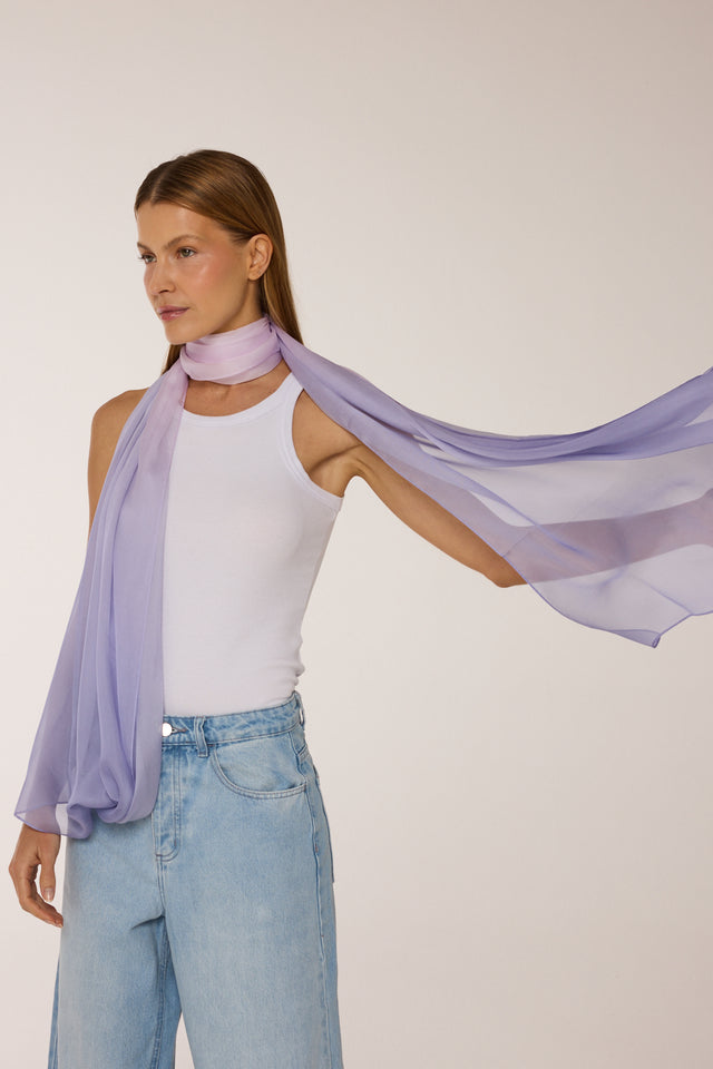 Echarpe Degradê lilás em mousseline de seda | 60x210cm