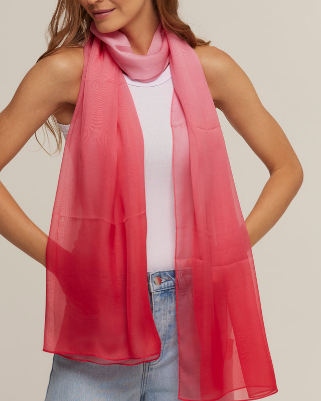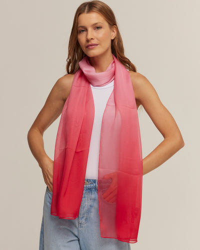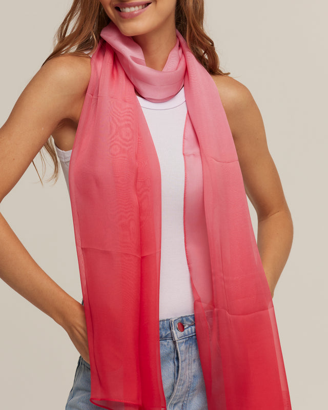 Echarpe Degradê pink em mousseline de seda | 60x210cm