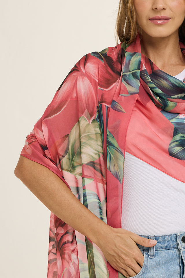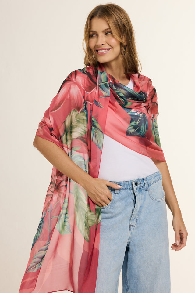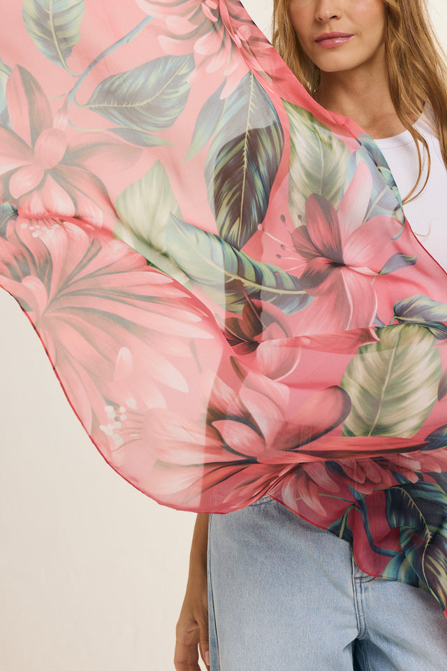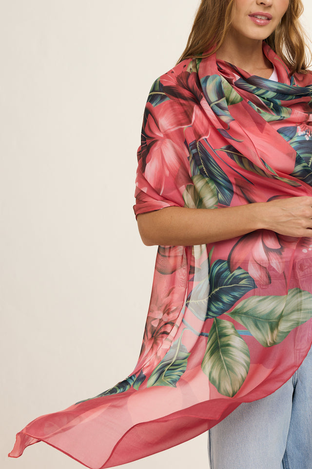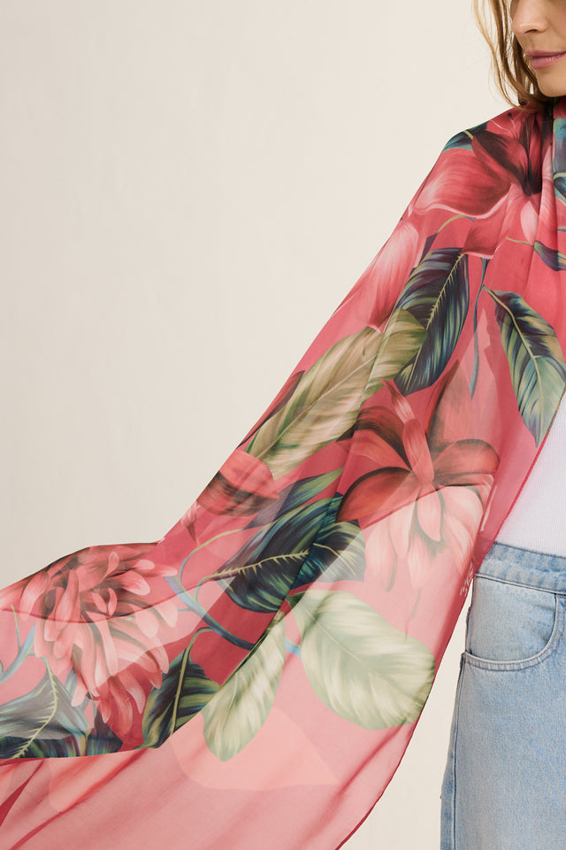 Echarpe Magenta Flor Flamingo em mousseline de seda | 60x210cm