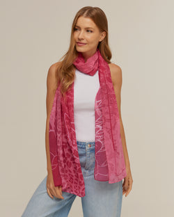 Echarpe Majestosa Print rosa em mousseline de seda | 60x210cm