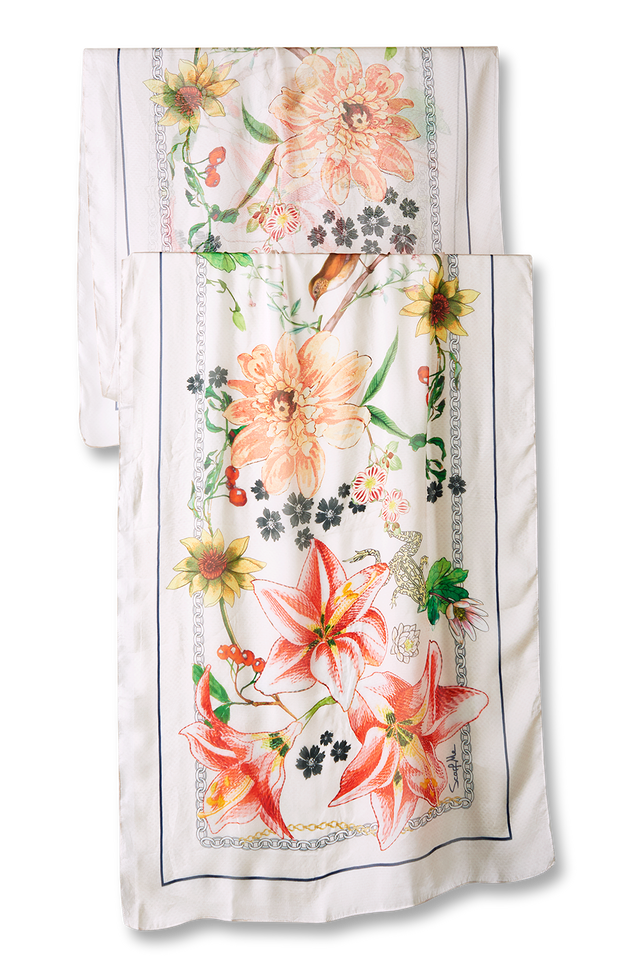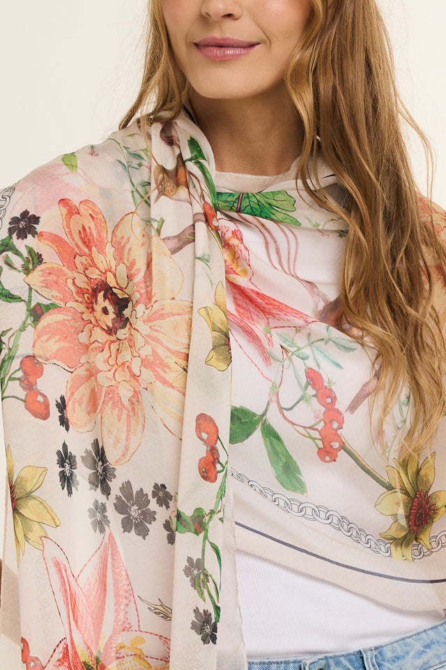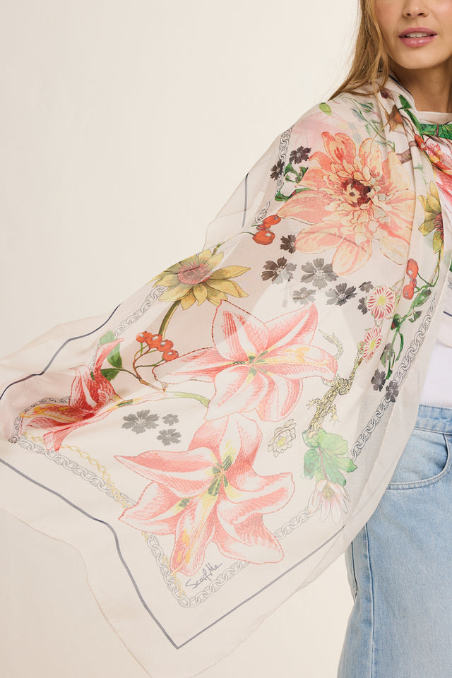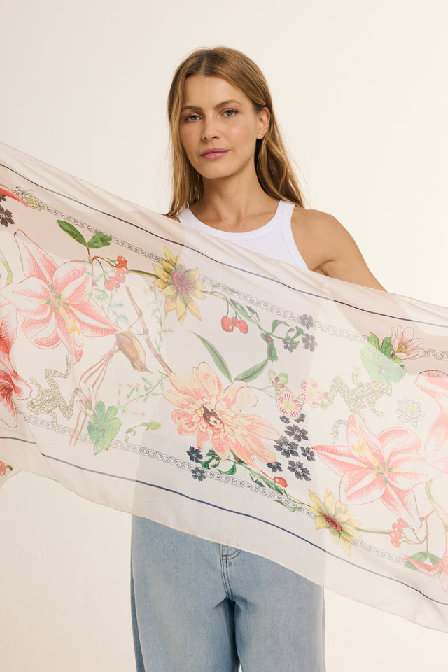 Ideal para mulheres que buscam acessórios leves e modernos, esta echarpe é perfeita para compor looks tanto clássicos quanto contemporâneos. Seu tecido fresco proporciona conforto nos dias mais quentes, enquanto a estampa localizada através da transparência acrescenta um charme único à sua produção.