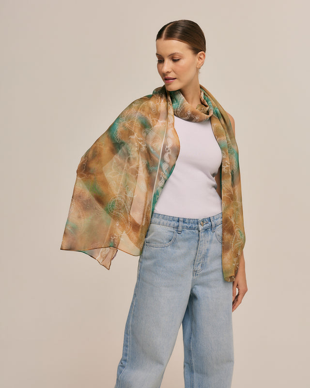 Echarpe Tie-Dye em mousseline de seda | 60x210cm
