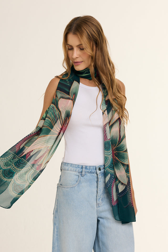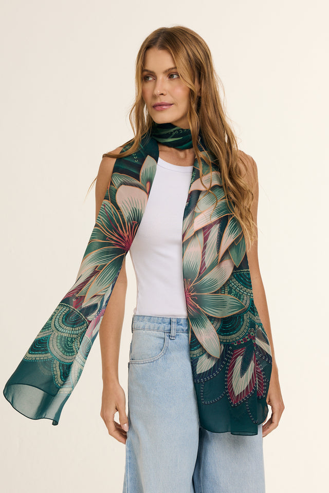 Echarpe Alegoria em mousseline de poliéster | 45x210cm