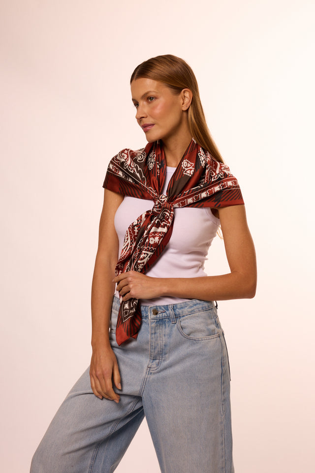 Que agora seu lenço fica sempre impecável — independente de como você usa, amarra ou movimenta. Cada volta, cada dobra e cada gesto revelam arte, cor e acabamento premium por inteiro.