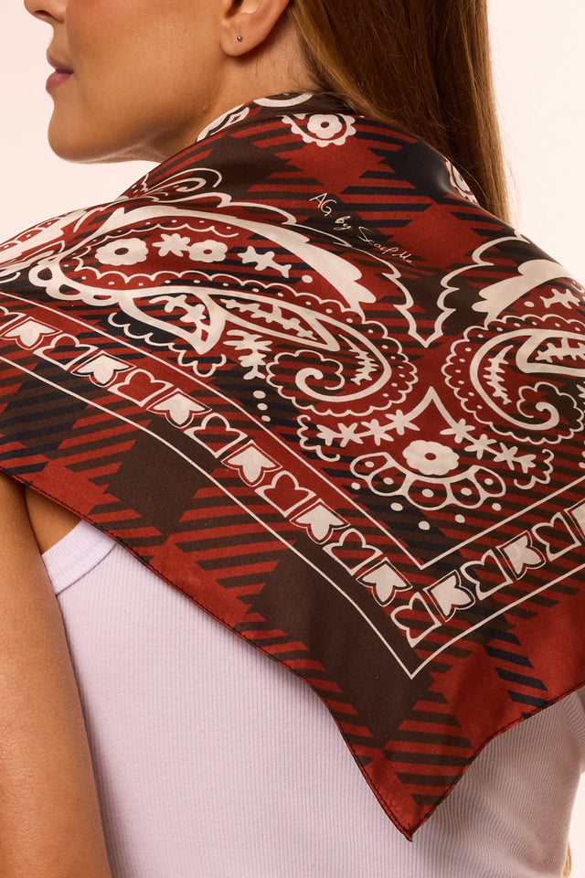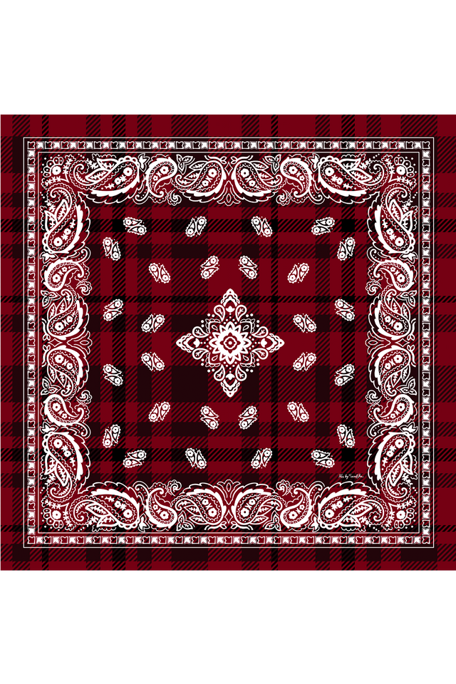 Lenço double face Bandana Xadrez em cetim de seda | 110x110cm