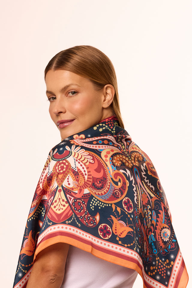 Lenço Mandala Cashmere em cetim de poliéster | 90x90cm
