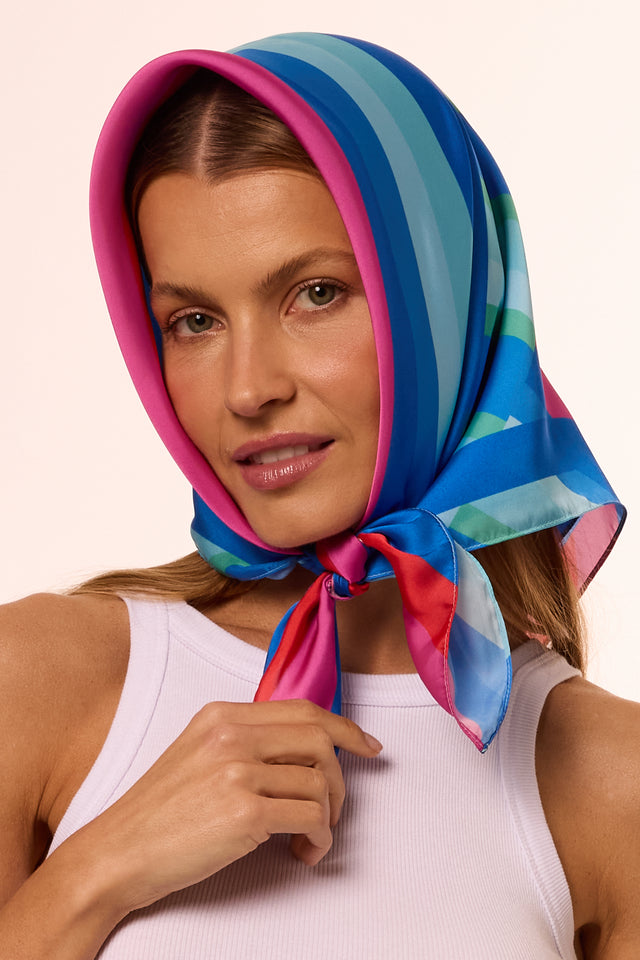 Lenço Listrado multicolor em cetim de poliéster | 70x70cm