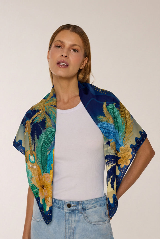 Lenço Encanto Carioca em cetim de seda | 90x90cm