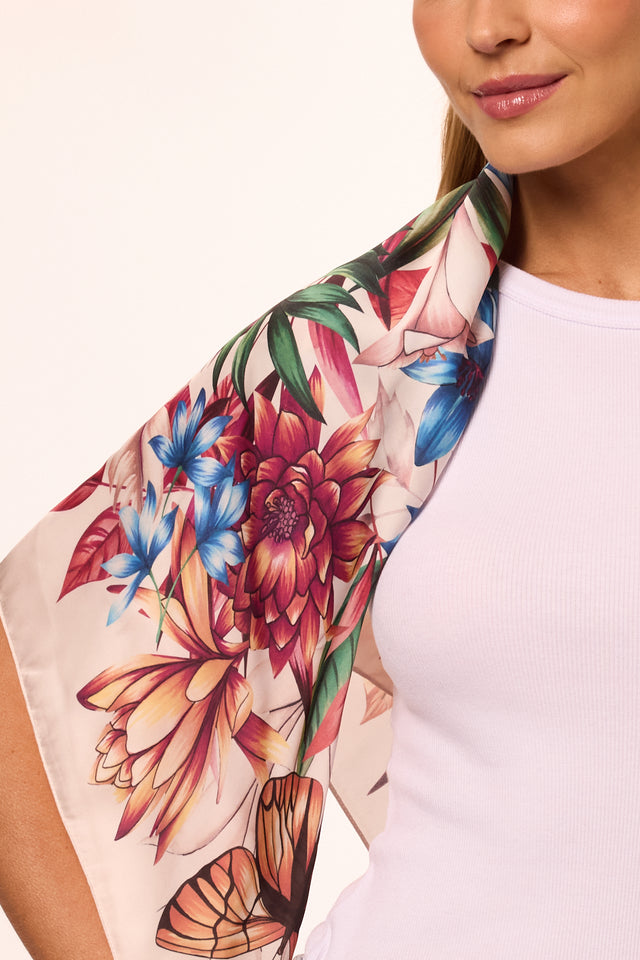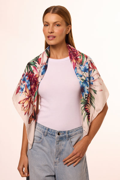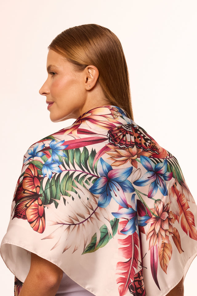 Lenço Flora Light em cetim de poliéster | 90x90cm
