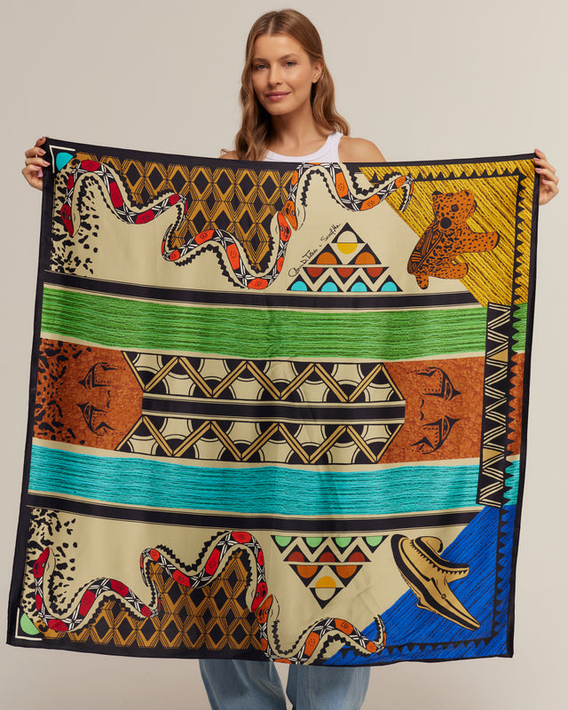 Lenço double face Grafismos em cetim de seda | 110x110cm