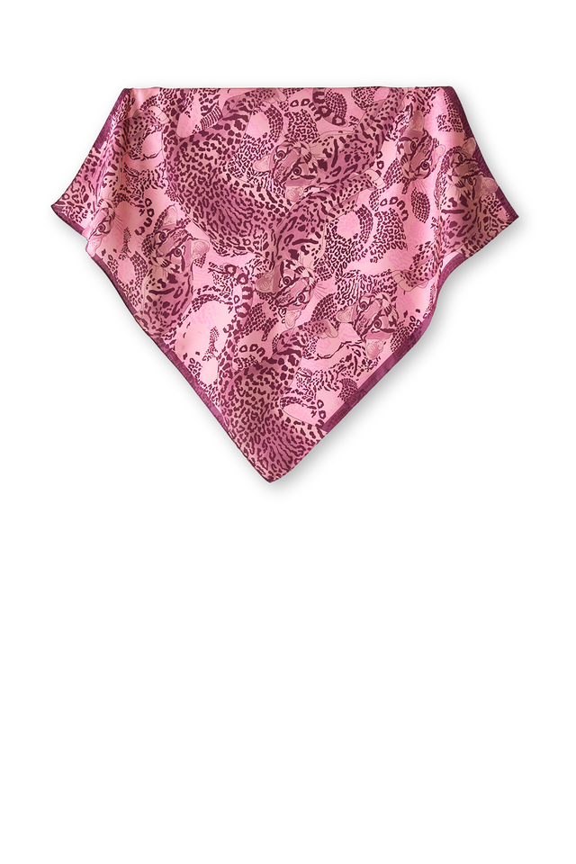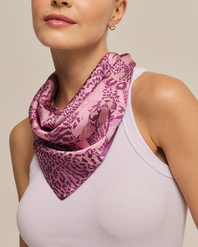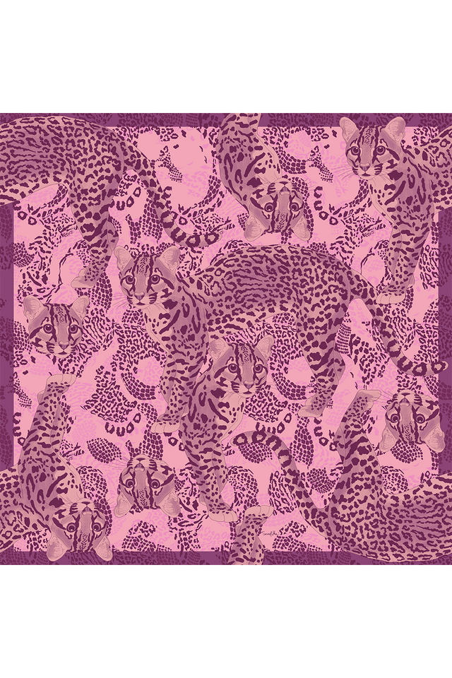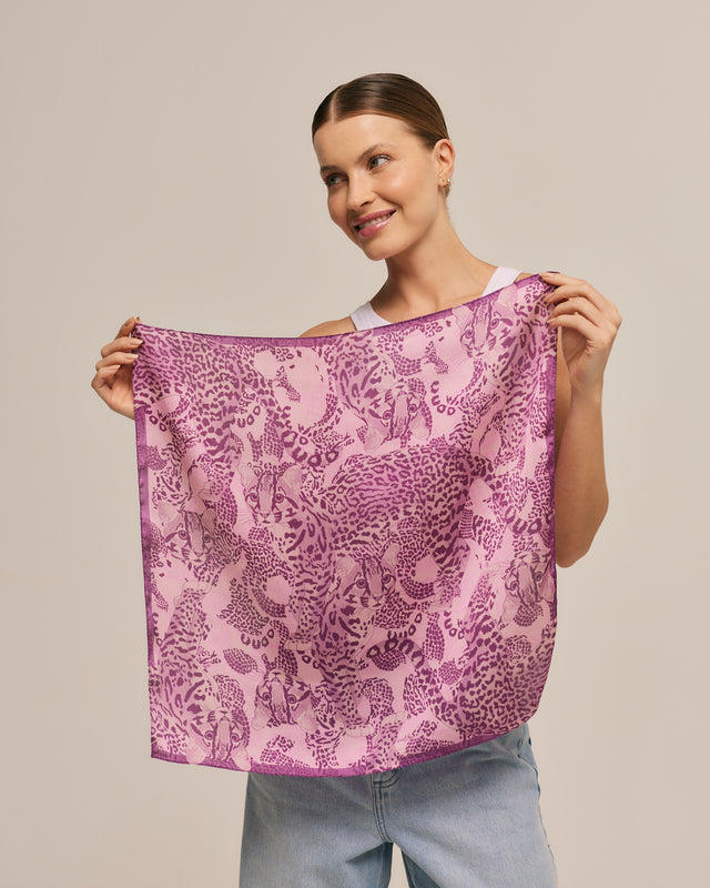 Lenço Jaguatirica do Cerrado roxo em cetim de poliéster | 50x50cm