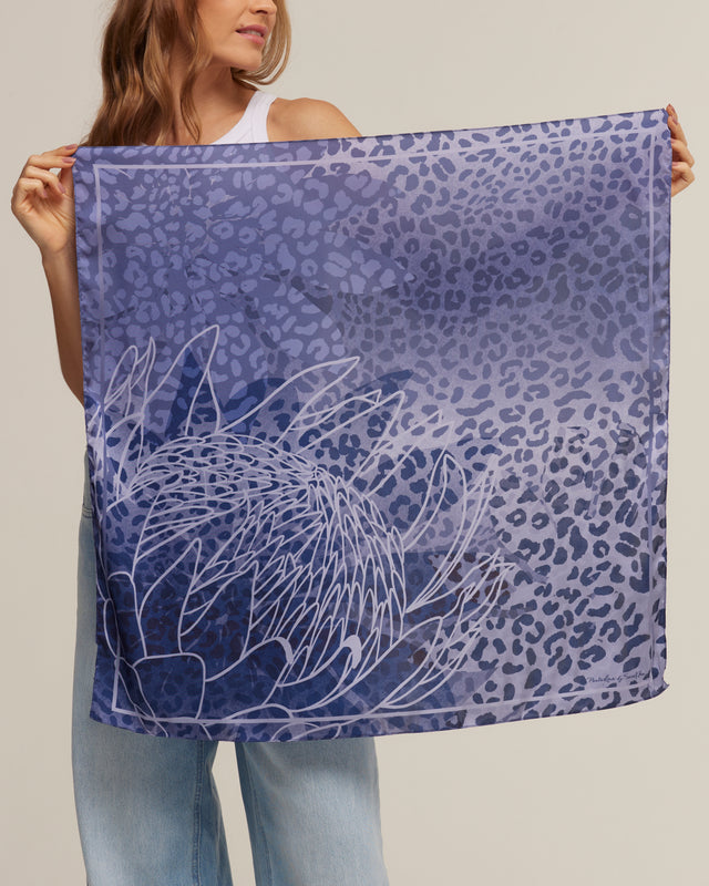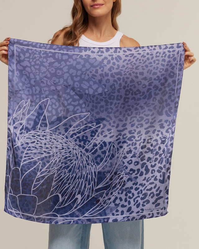Lenço Majestosa Print future dusk em cetim de poliéster | 70x70cm