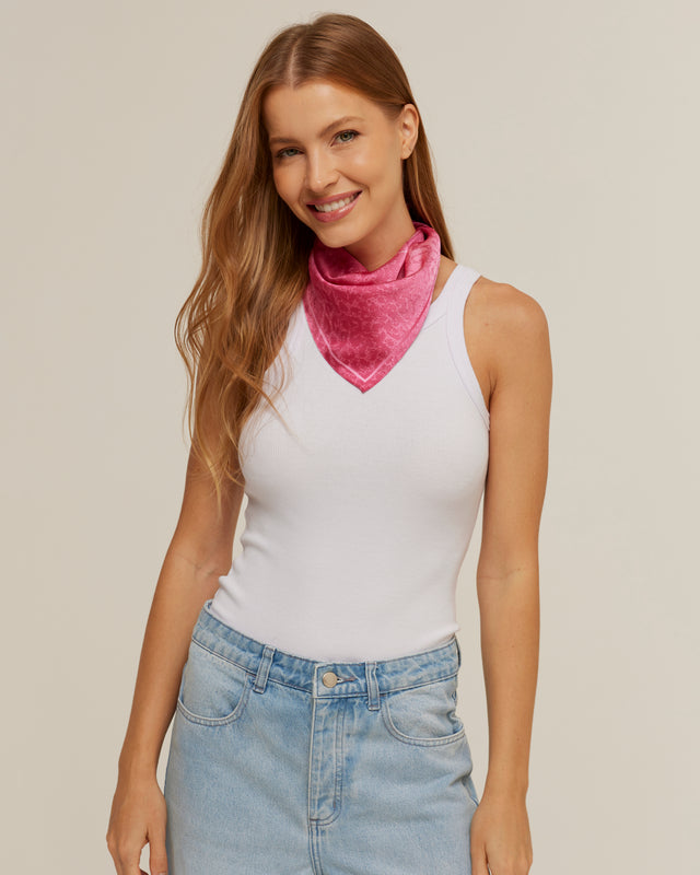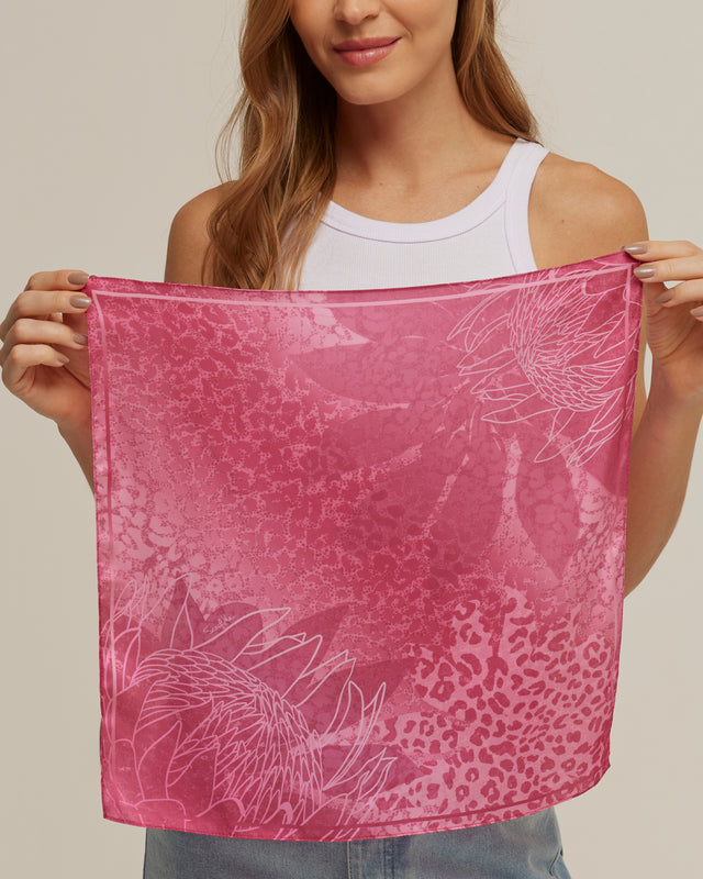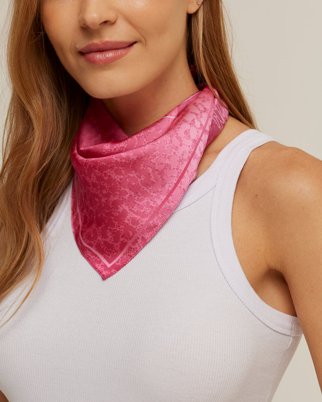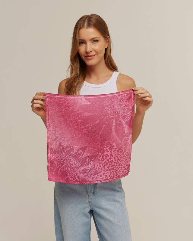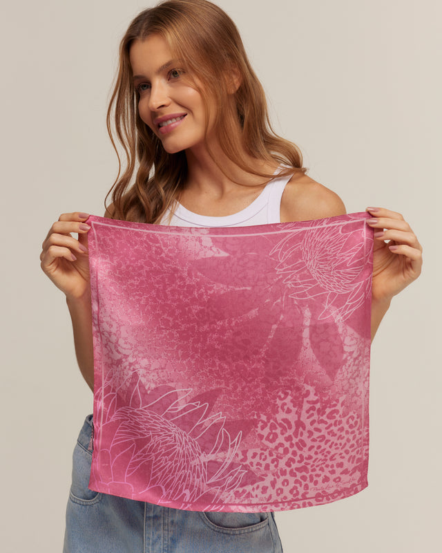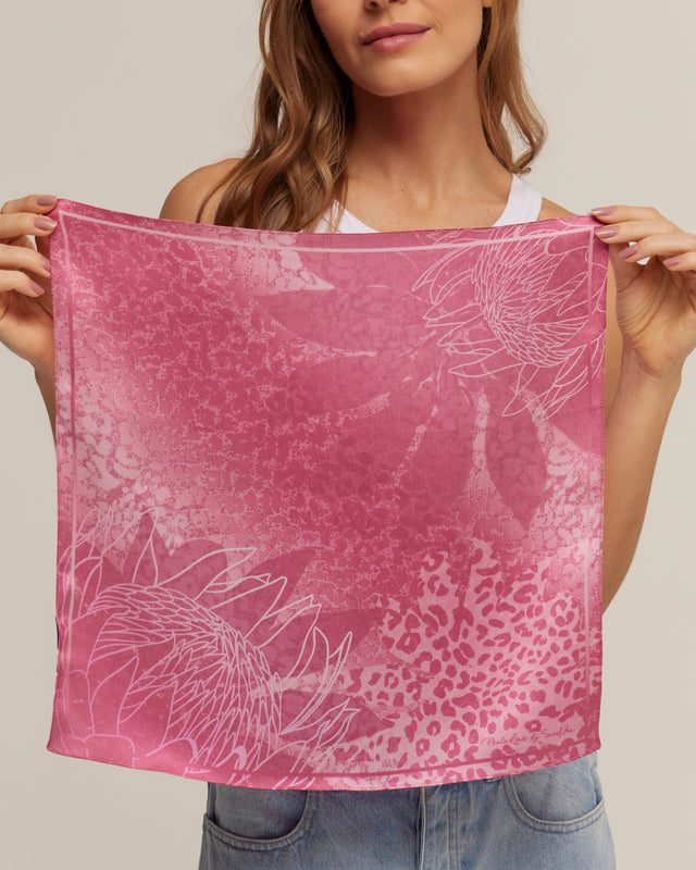Lenço Majestosa Print rosa em cetim de seda | 40x40cm