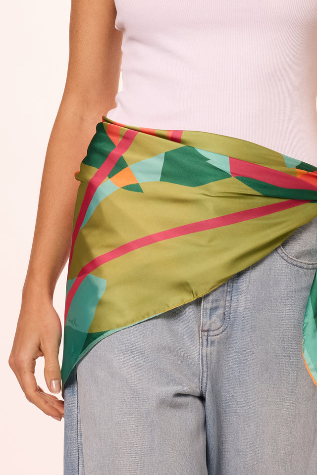 Lenço Musa Tropical em cetim de poliéster | 90x90cm
