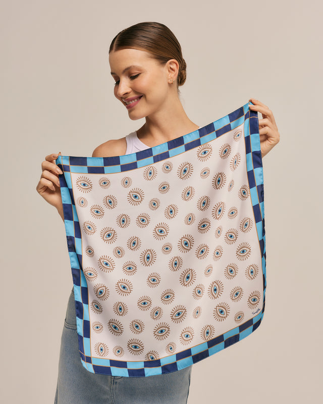 Lenço Olho Grego off white em cetim de poliéster | 50x50cm