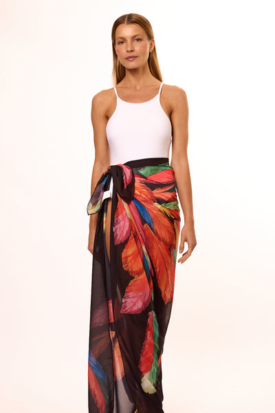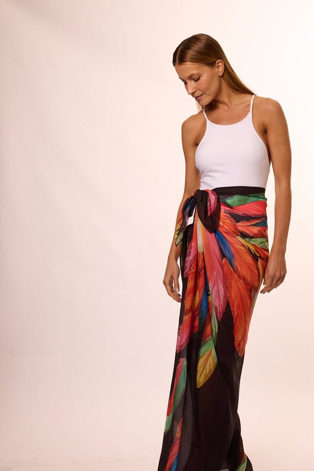 Pareô Penas Aquarela em mousseline de poliéster | 130x130cm