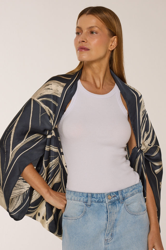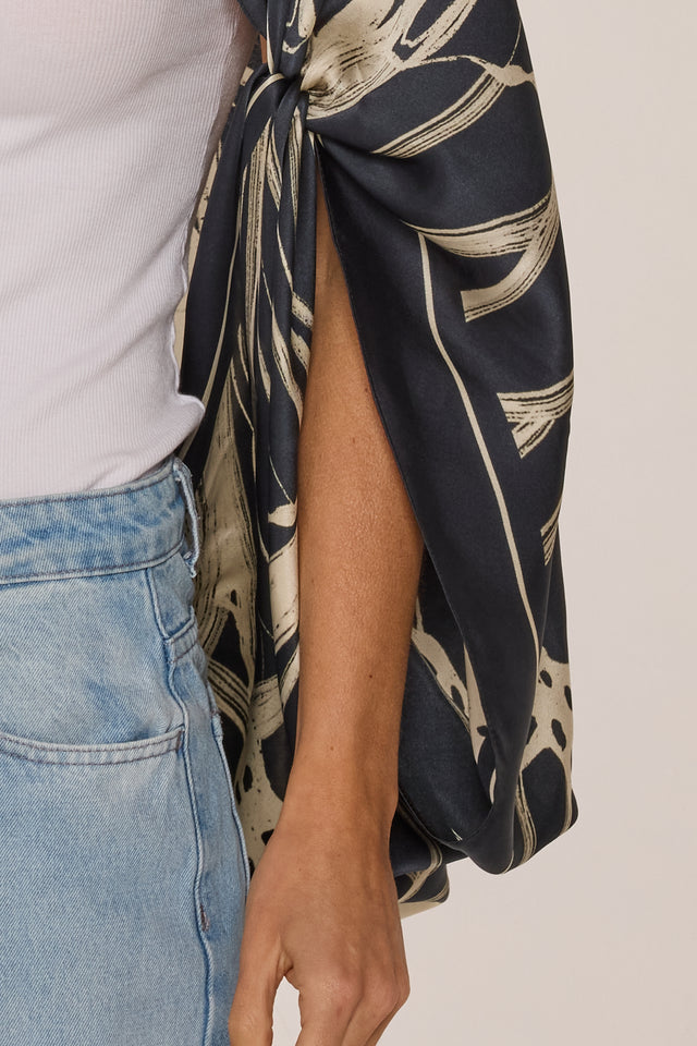 O lenço possui o toque acetinado com brilho e caimento super leve.