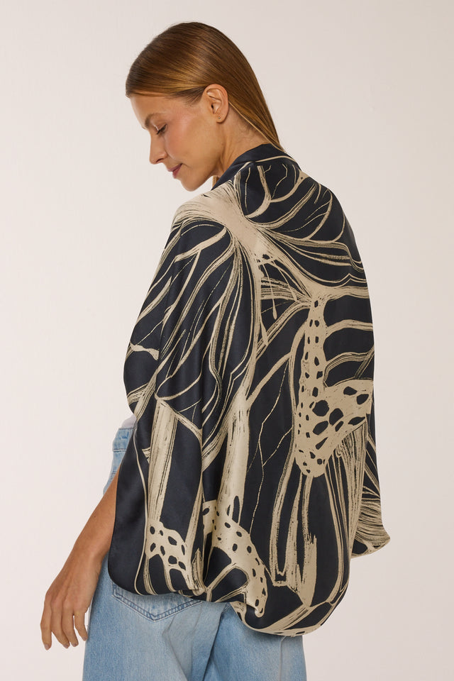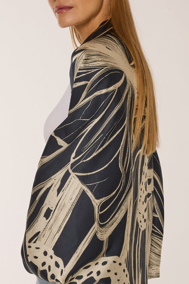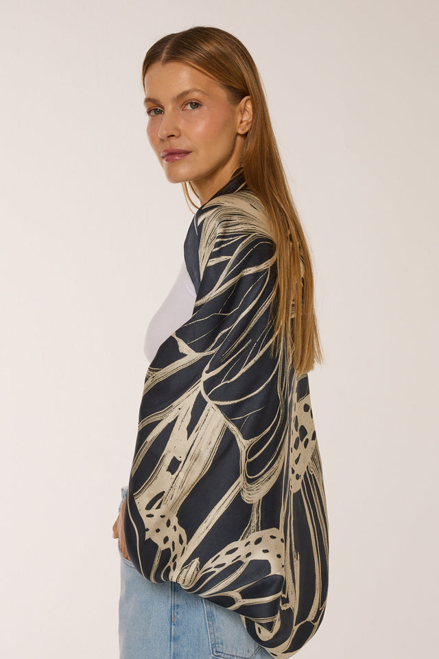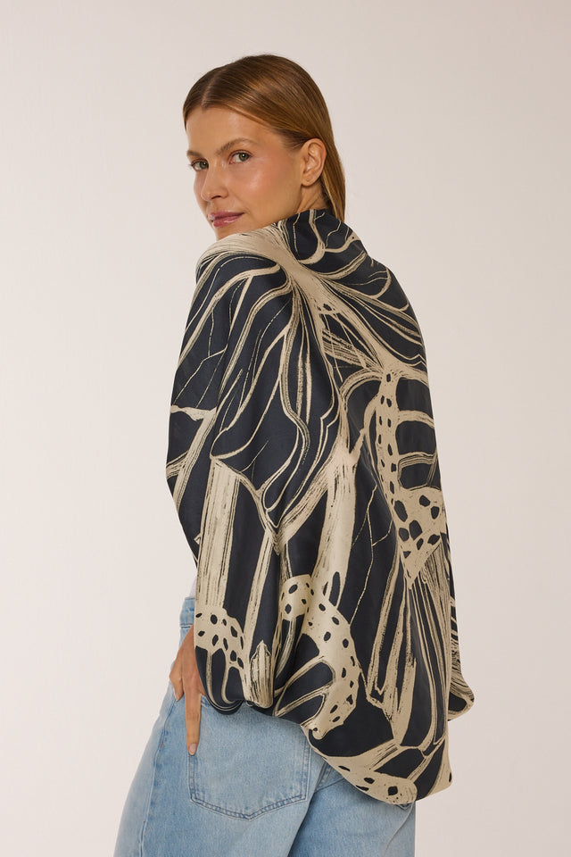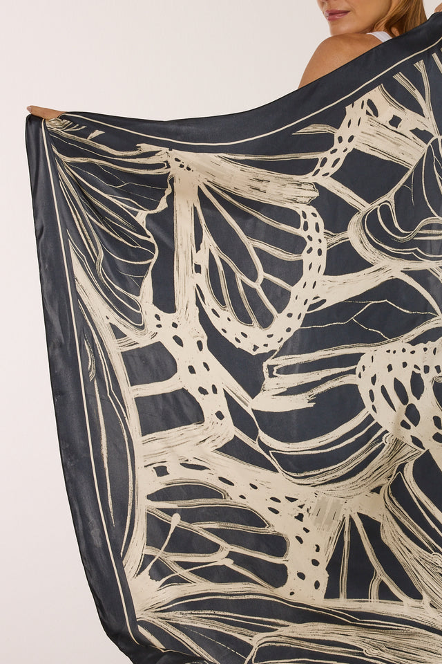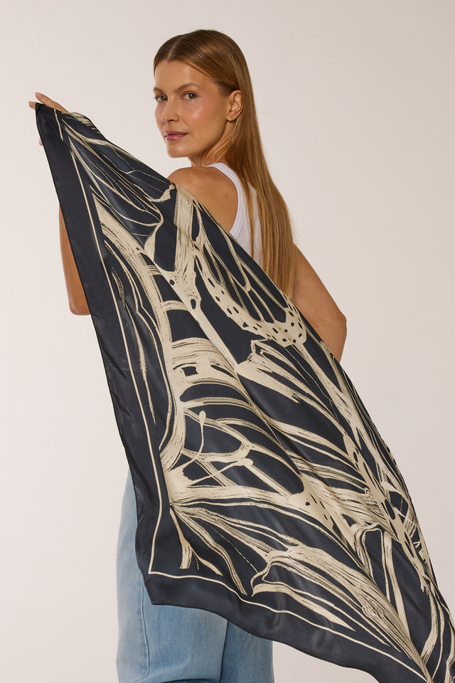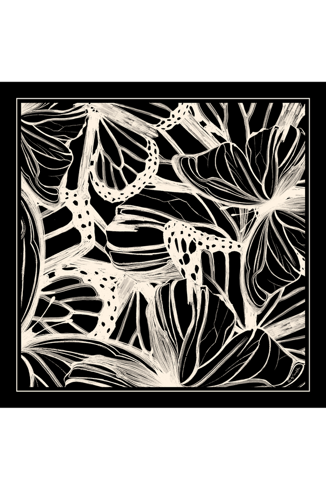 Lenço double face Race Butterfly em cetim de seda | 110x110cm