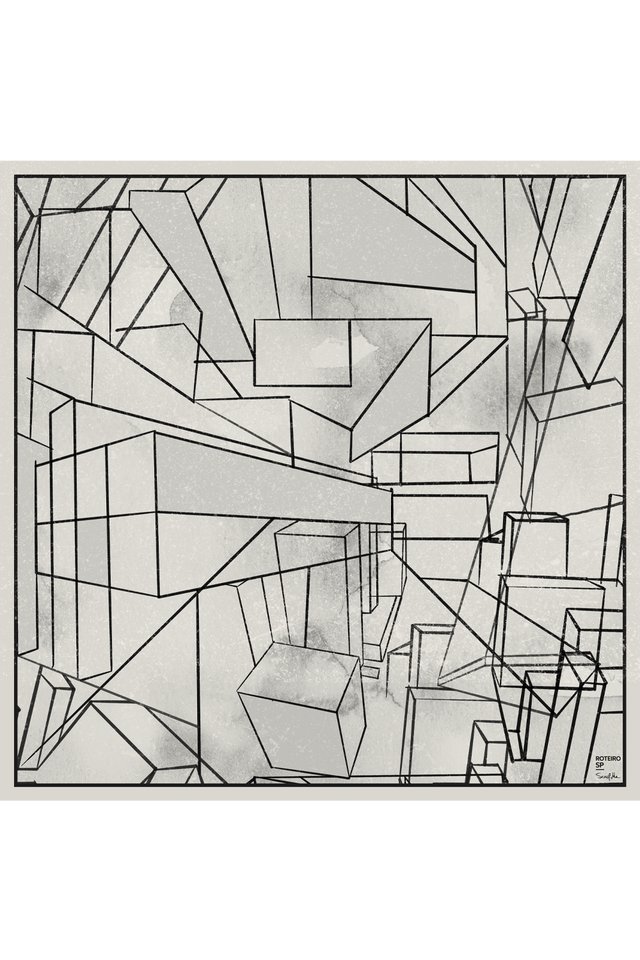 Com estampa autoral que traduz ângulos da cidade em formas gráficas, a collab traz lenços nos tamanhos 50x50 e 90x90, além de twillies em cetim de poliéster, com versões em off white e preto. Cada peça é um convite a vestir São Paulo com estilo e identidade.