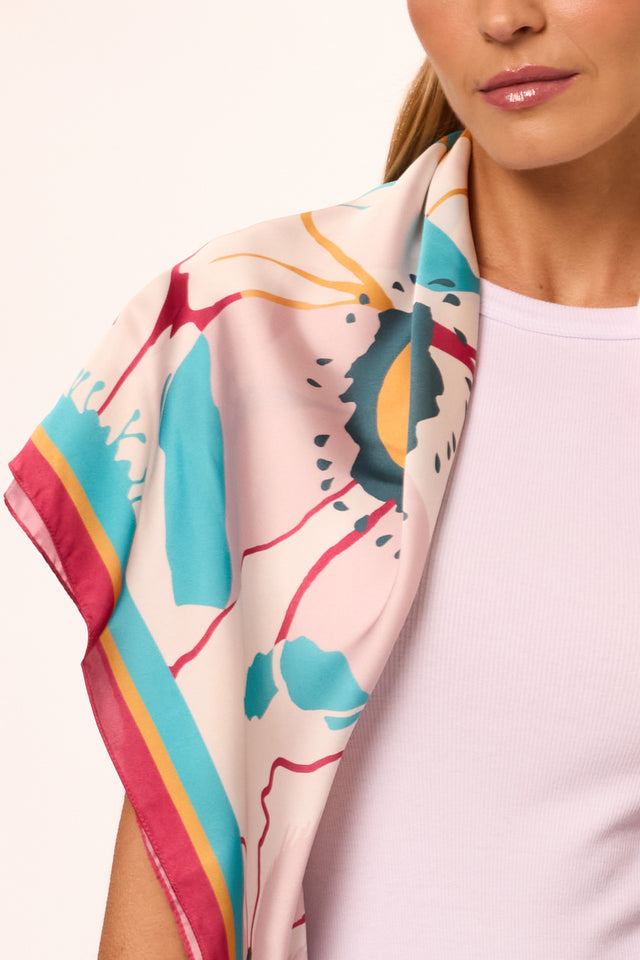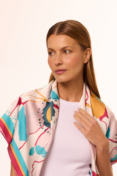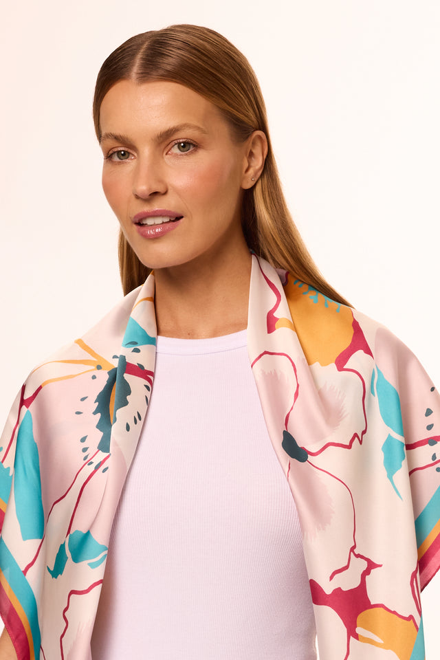 Lenço Flores Candy em cetim de poliéster | 90x90cm