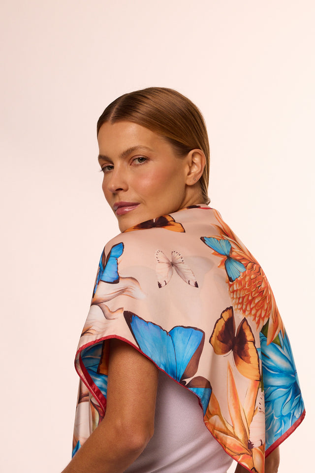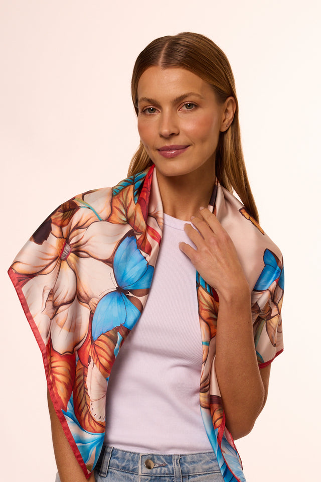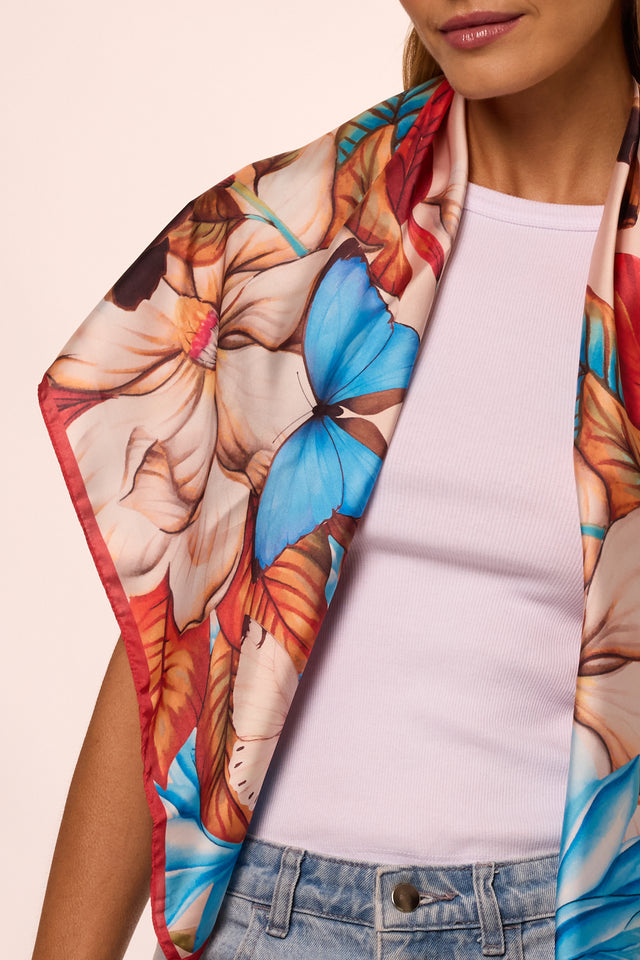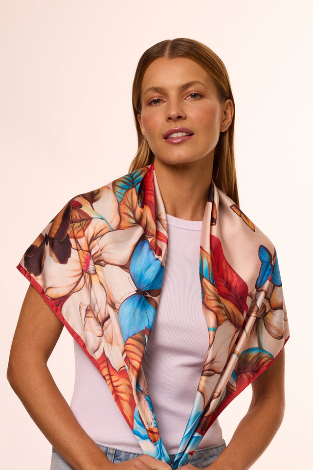 Lenço Yasmin floral bege em cetim de poliéster | 90x90cm