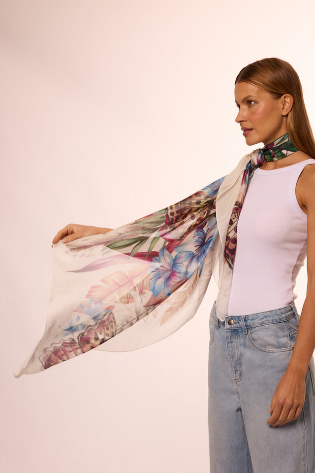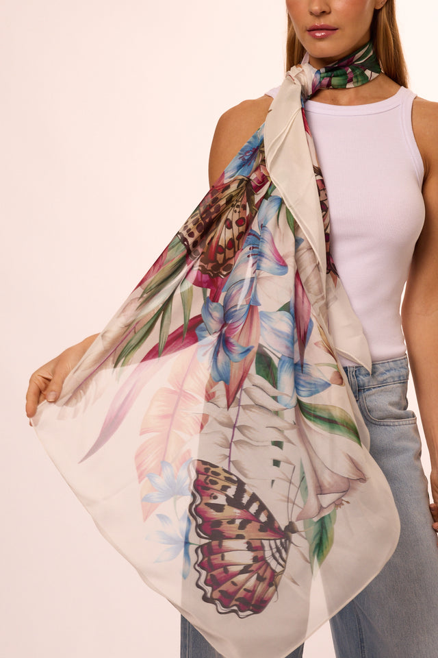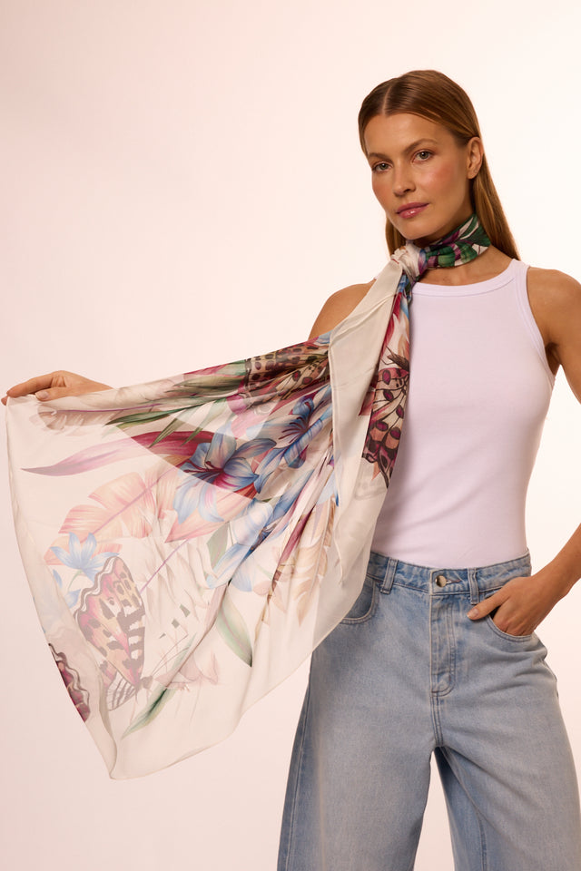 Max lenço Flora Light em mousseline de seda | 130x130cm