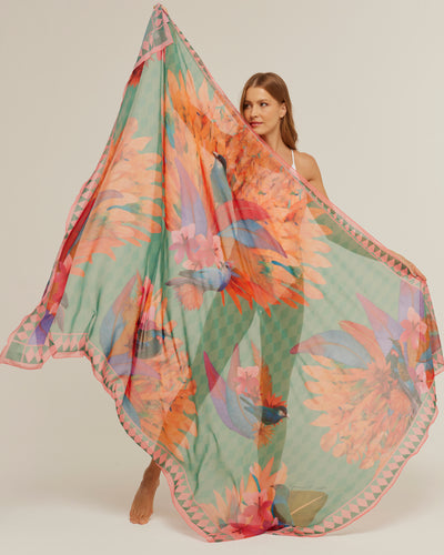 Com tecido transparente e estampa localizada, este pareô traz charme para o seu look, além de possuir um tecido macio e fino, proporciona conforto e um charme sem igual.