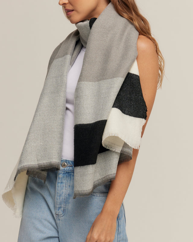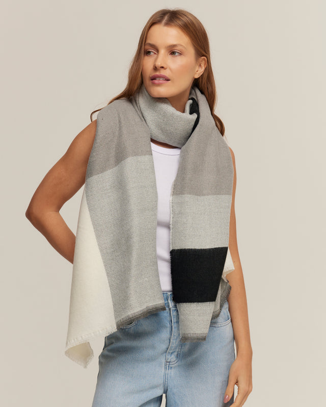 Pashmina cinza Geométrica em toque de lã