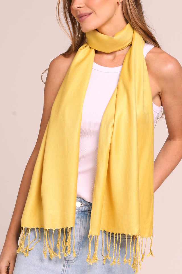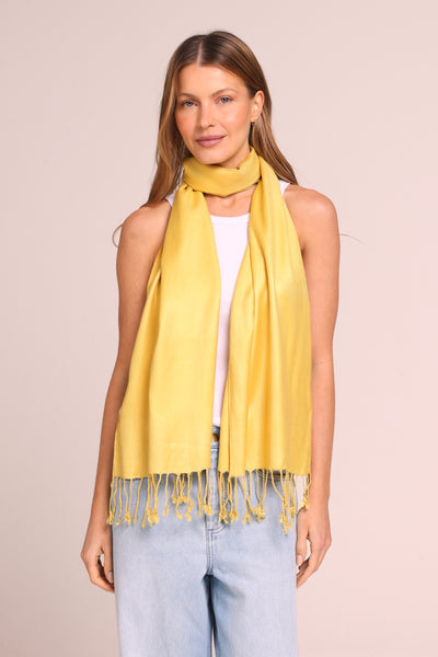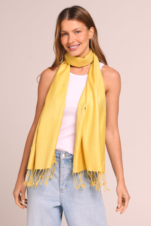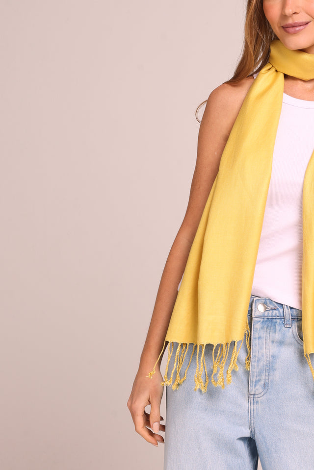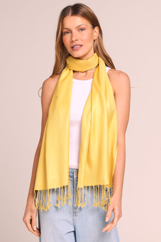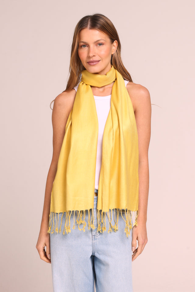 A Pashmina amarela de viscose é a melhor companhia para os dias frios!