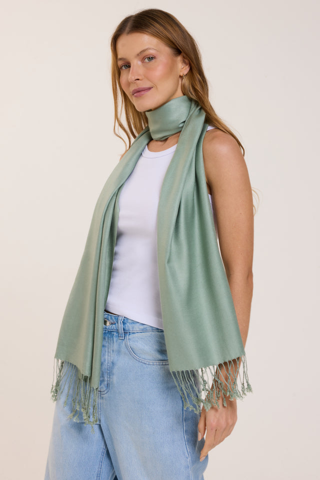 A Pashmina chá verde de viscose é a melhor companhia para os dias frios!