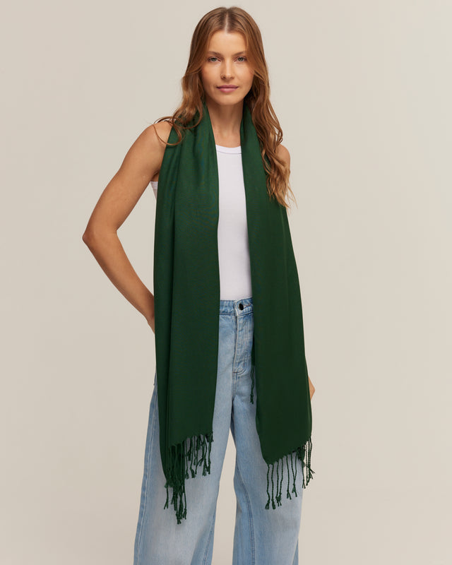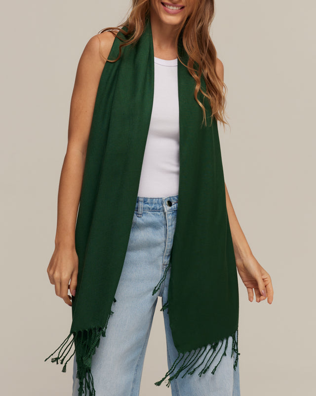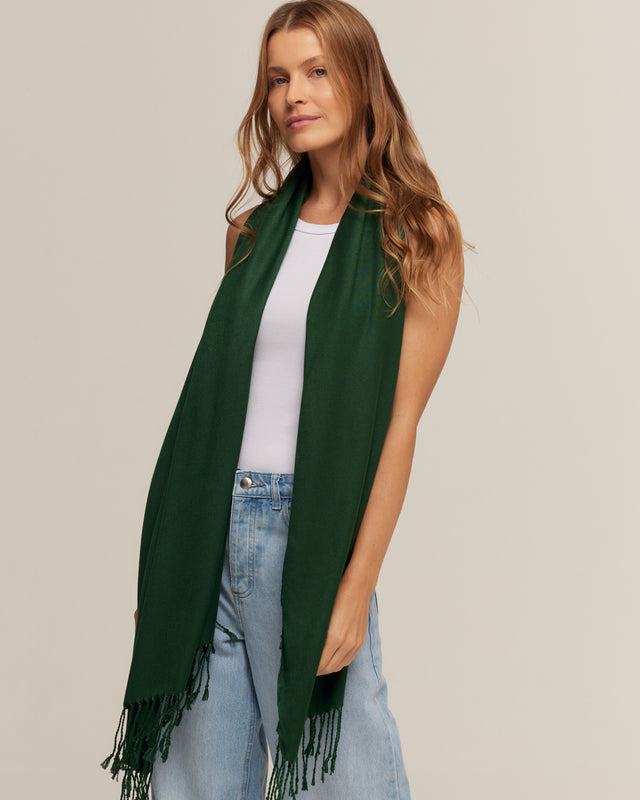 A Pashmina verde esmeralda de viscose é a melhor companhia para os dias frios deslizando sobre seus ombros e nunca perder o charme e elegância em todas as ocasiões de uso.