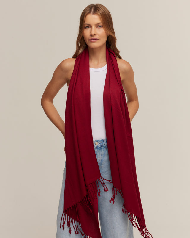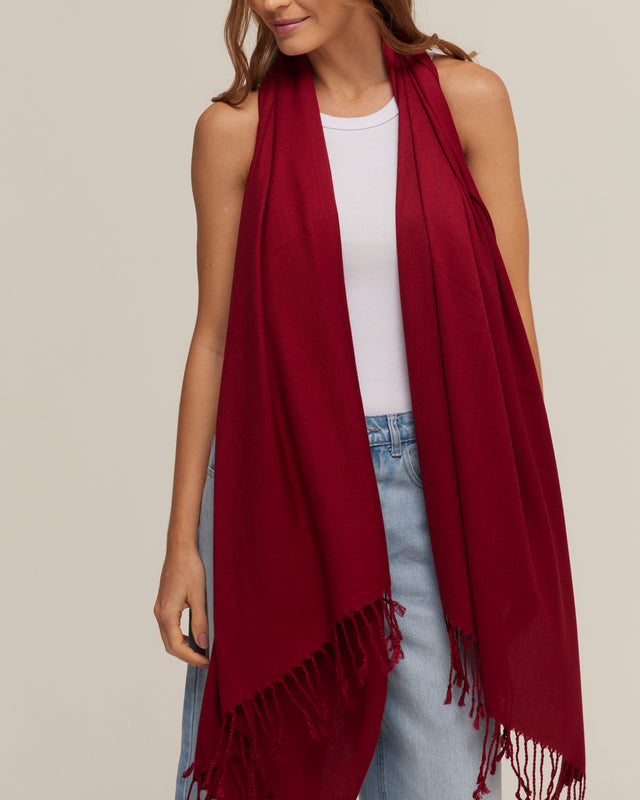 A Pashmina vinho de viscose é a melhor companhia para os dias frios deslizando sobre seus ombros e nunca perder o charme e elegância em todas as ocasiões de uso.
