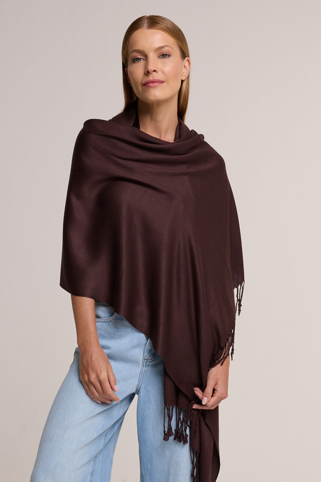 A Pashmina café de viscose é a melhor companhia para os dias frios deslizando sobre seus ombros e nunca perder o charme e elegância em todas as ocasiões de uso.