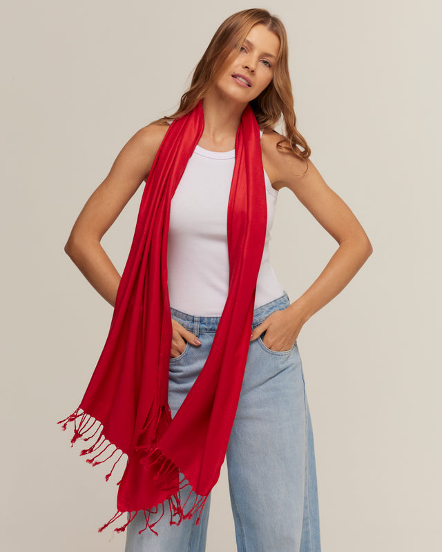 A Pashmina cereja de viscose é a melhor companhia para os dias frios deslizando sobre seus ombros e nunca perder o charme e elegância em todas as ocasiões de uso.