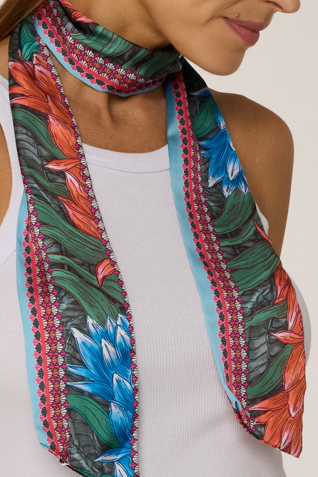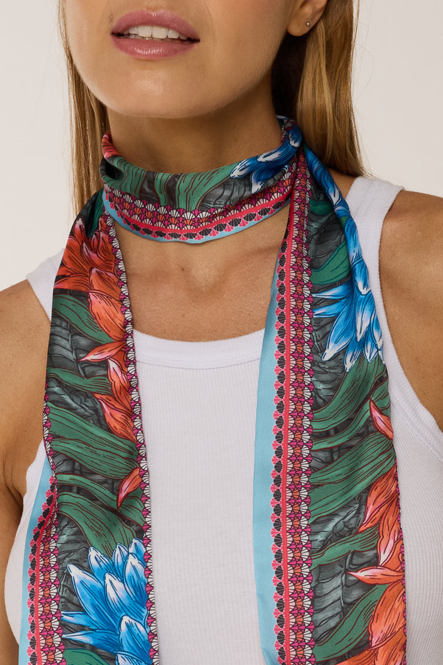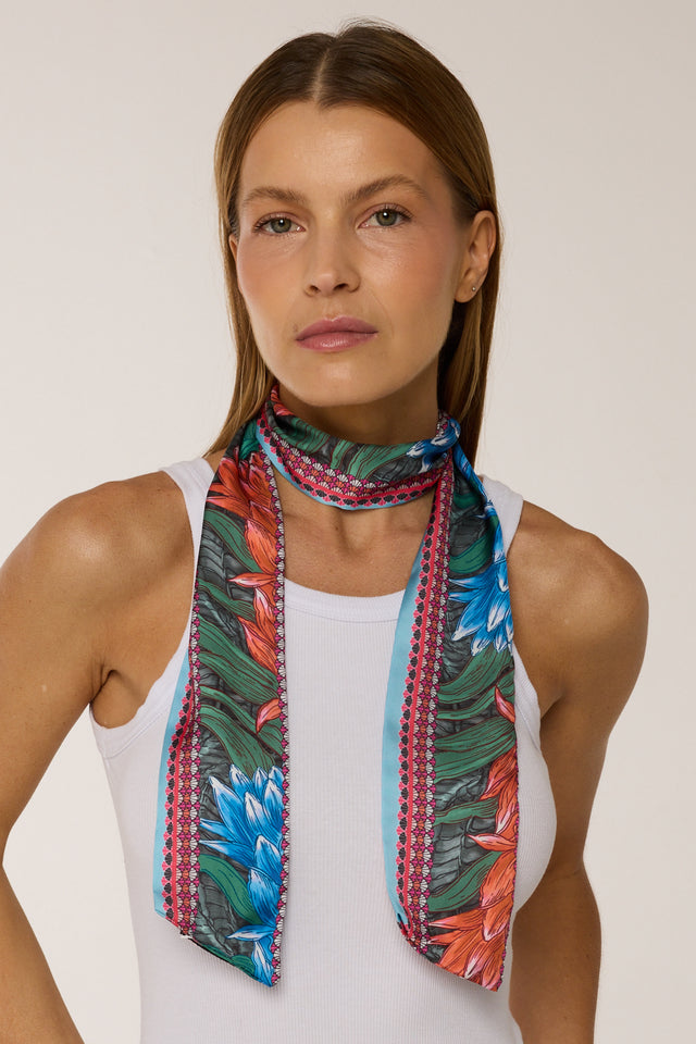 Twilly Croco Bromélia azul em cetim de poliéster | 8x130cm