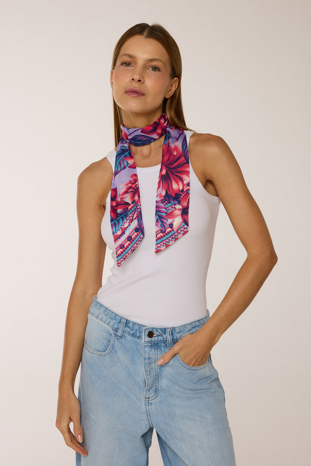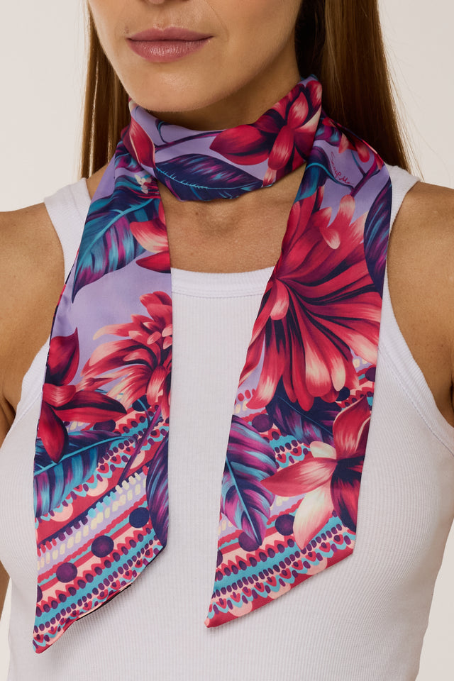 Twilly Flor Flamingo lavanda em cetim de poliéster | 8x130cm
