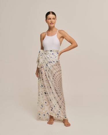 A coleção reflete esse universo místico e espiritual. Em diferentes culturas e religiões, como no Judaísmo, Budismo e Islamismo, o olho grego é reverenciado como um guardião contra o mal. As formas estreladas e os grafismos presentes nos lenços remetem à beleza e à força dessa proteção que acompanha cada passo na entrada de um novo ano.