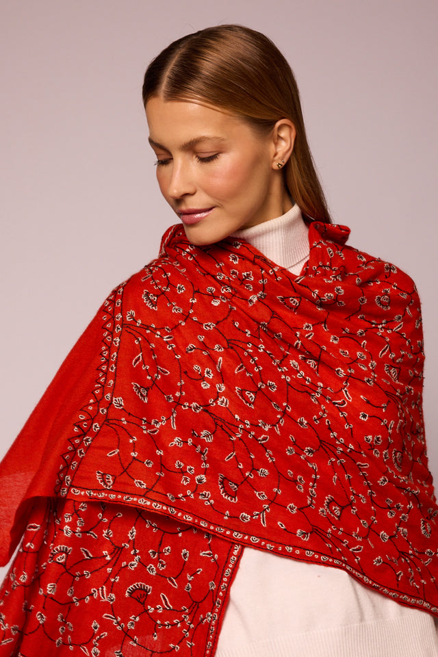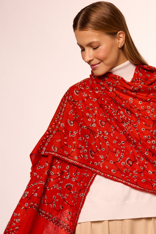 Cashmere Bordado vermelho/preto