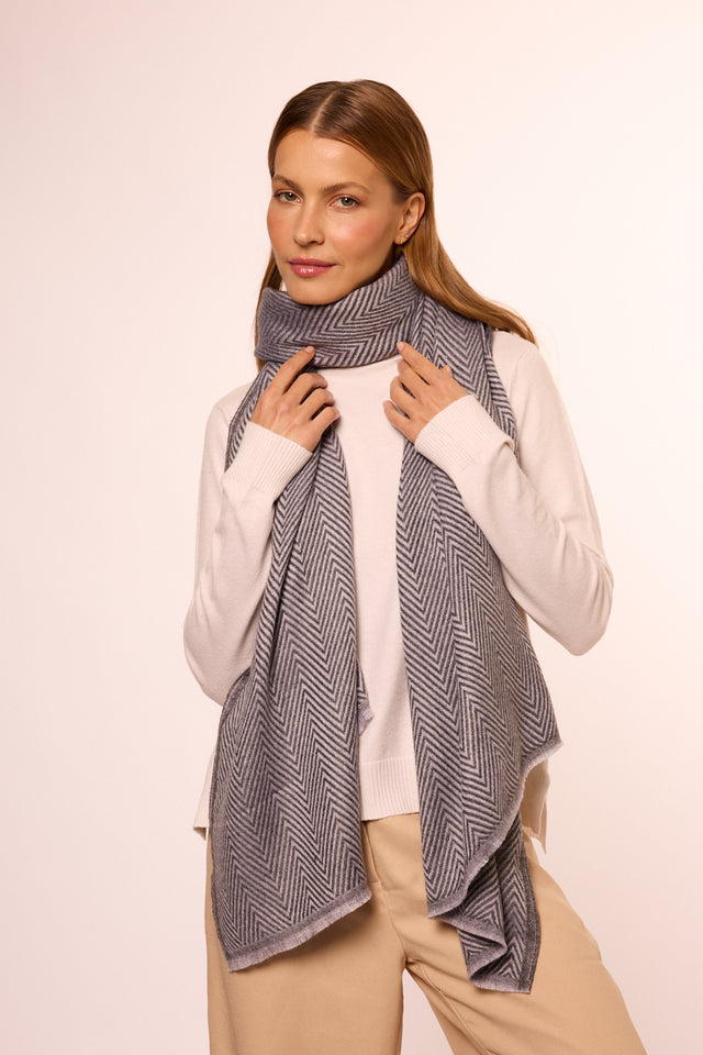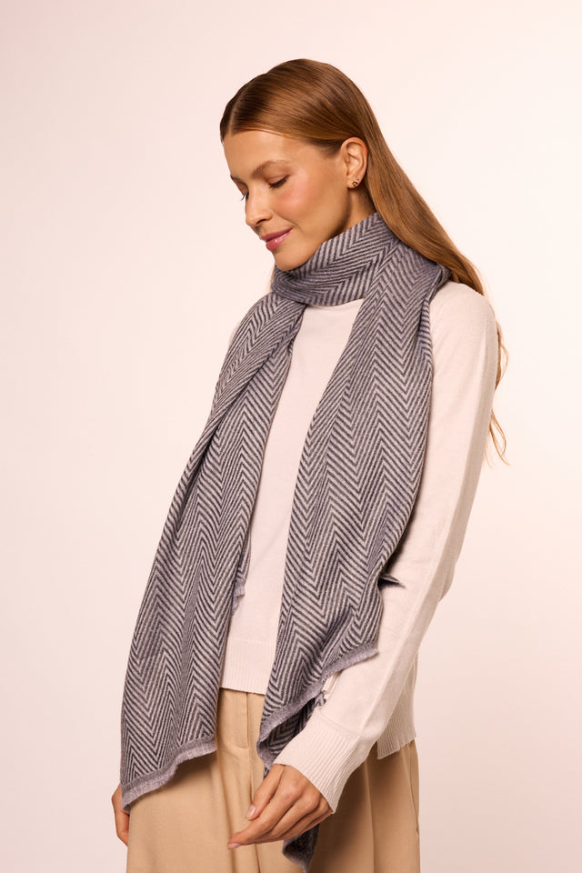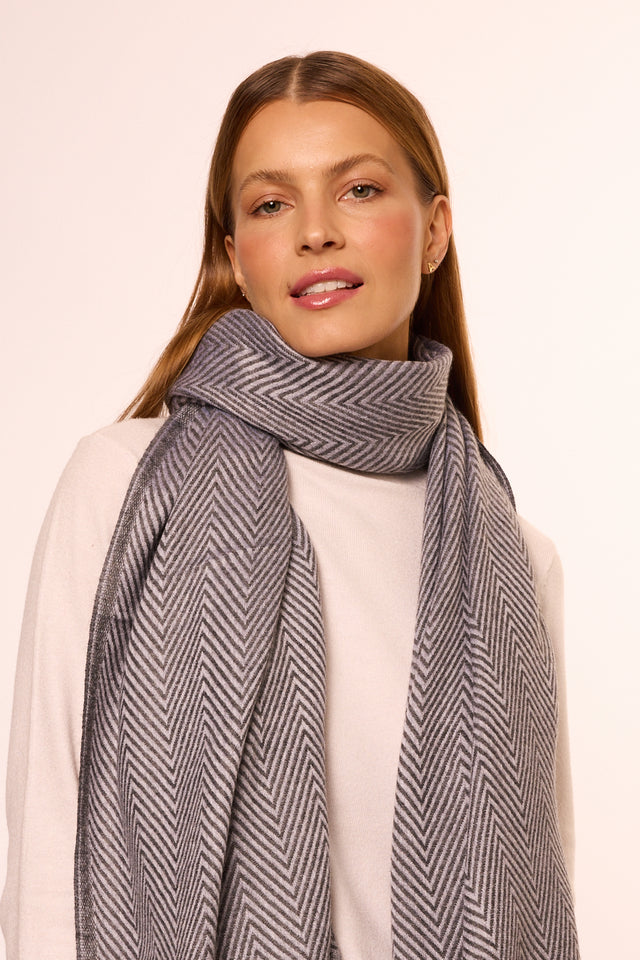 O Cashmere Espinha de Peixe Scarf Me, é uma peça mais encorpada, a origem do nome vem da trama, pois os fios são costurados em forma de espinha de peixe, trazendo a sofisticação e o charme desde a primeira trama.