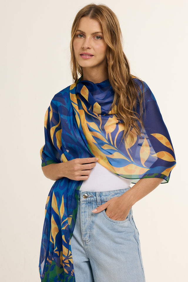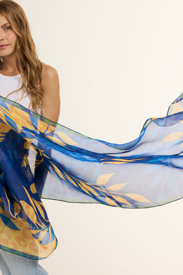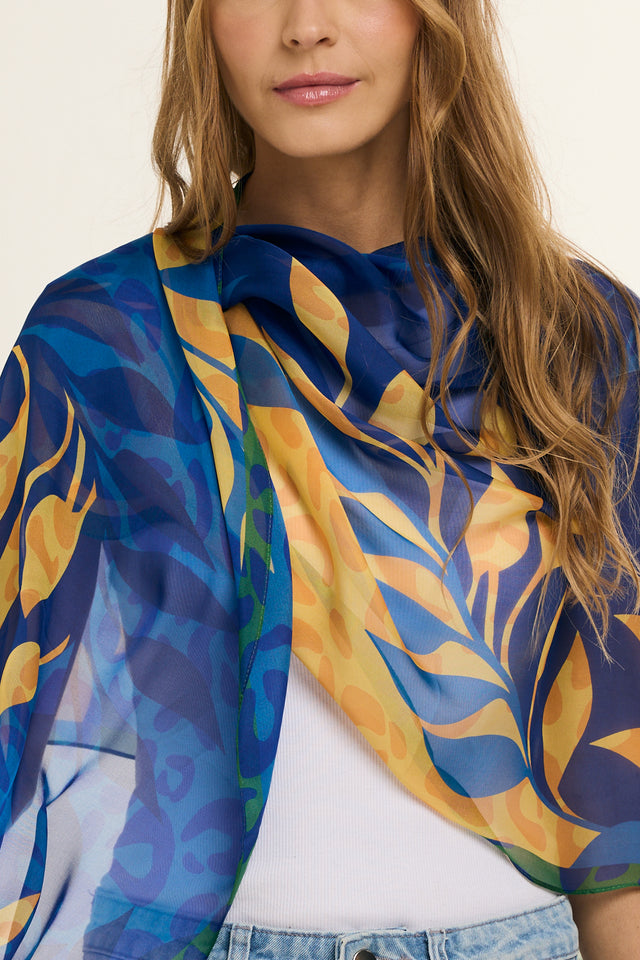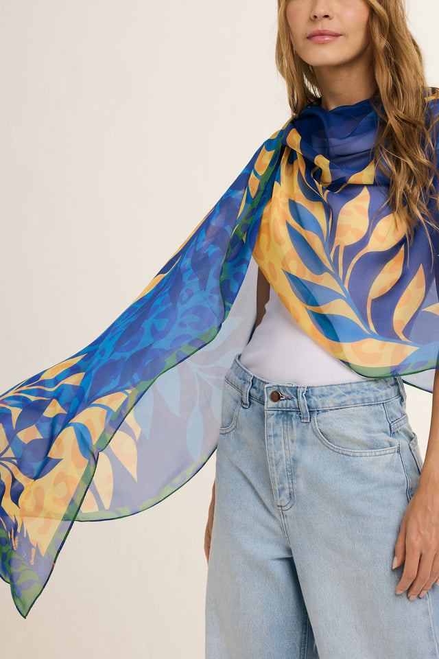 Echarpe Brasil Animal azul em mousseline de seda | 60x210cm