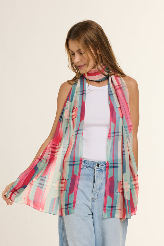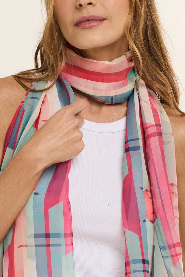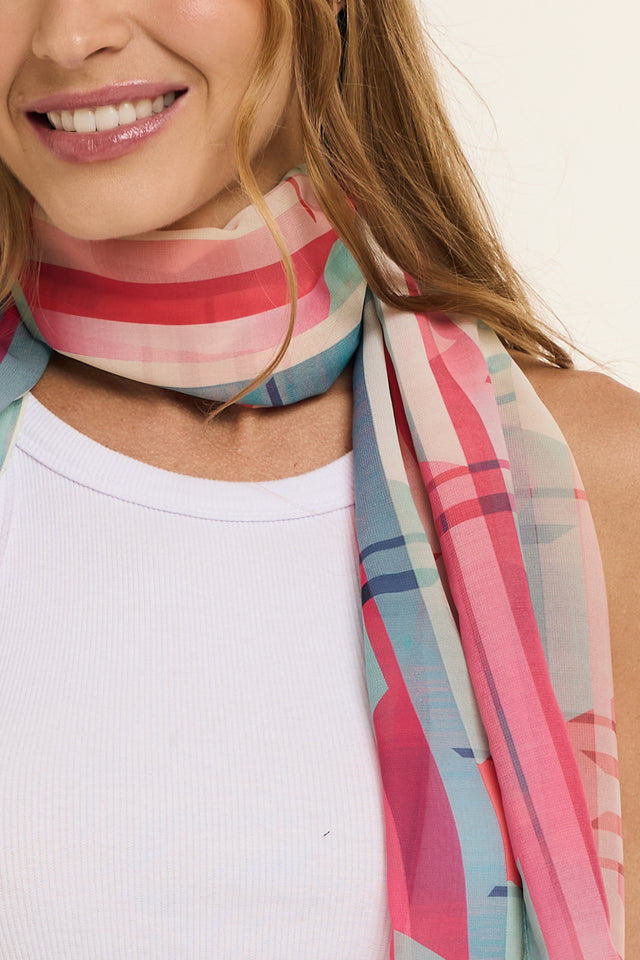 Echarpe Galeria rosa em mousseline de poliéster | 45x210cm