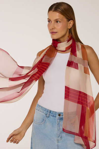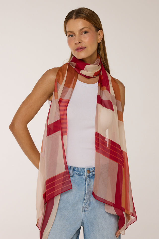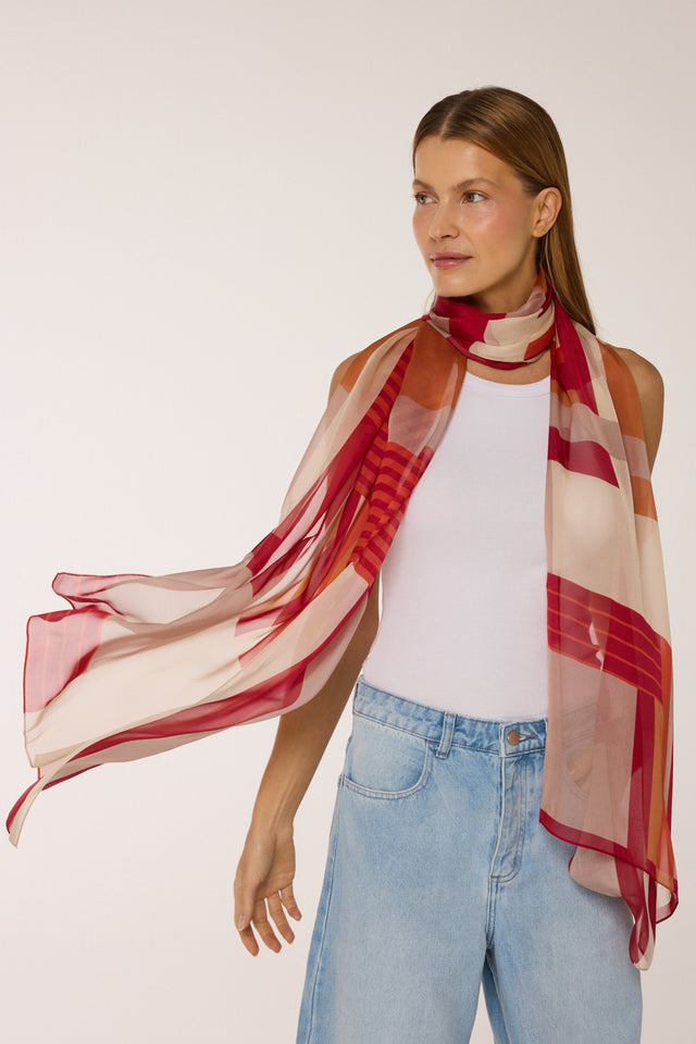Echarpe Geométrico vermelho em mousseline de seda | 60x210cm
