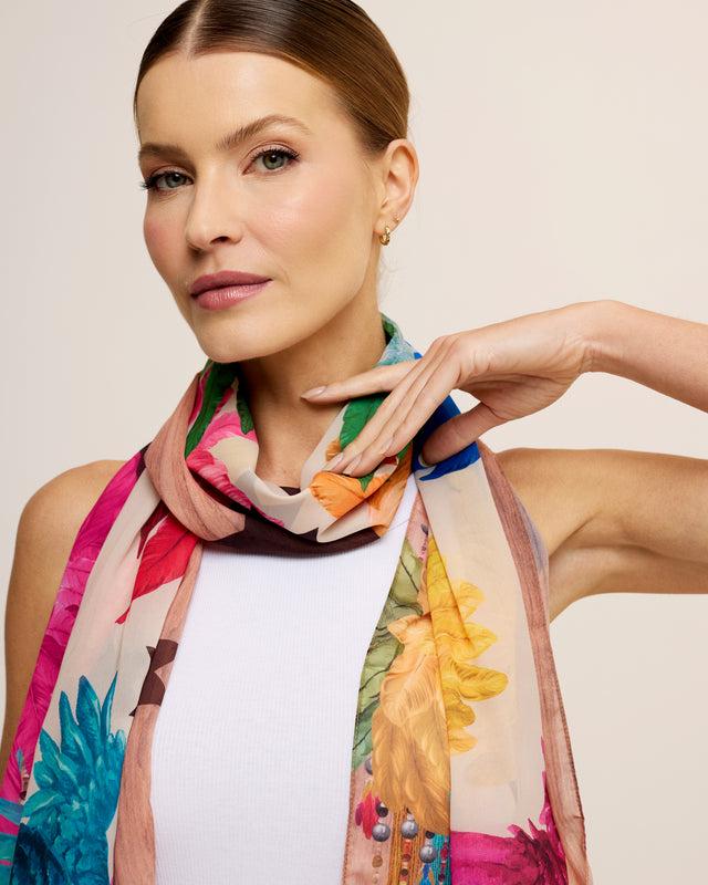 Conhecida por sua fluidez e suavidade, a echarpe de mousseline de poliéster é ideal para ocasiões especiais, com toque "silk touch", trazendo elegância e estilo às suas produções.