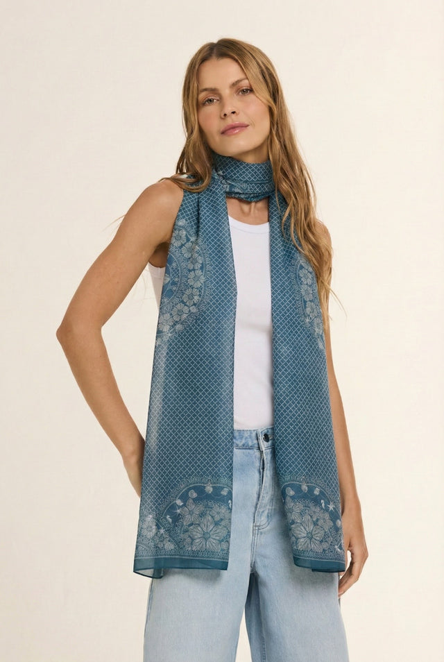 Echarpe Ritos de Mar azul em mousseline de seda | 60x210cm