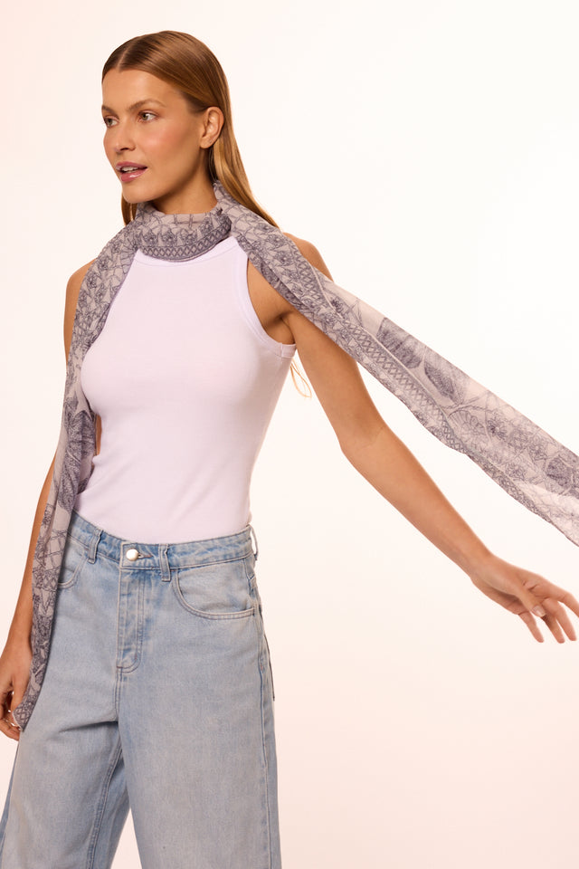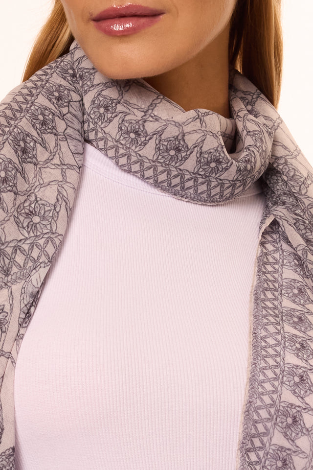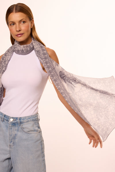 Echarpe Ritos de Mar prateado em mousseline de seda | 60x210cm