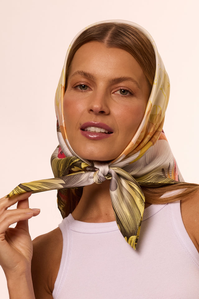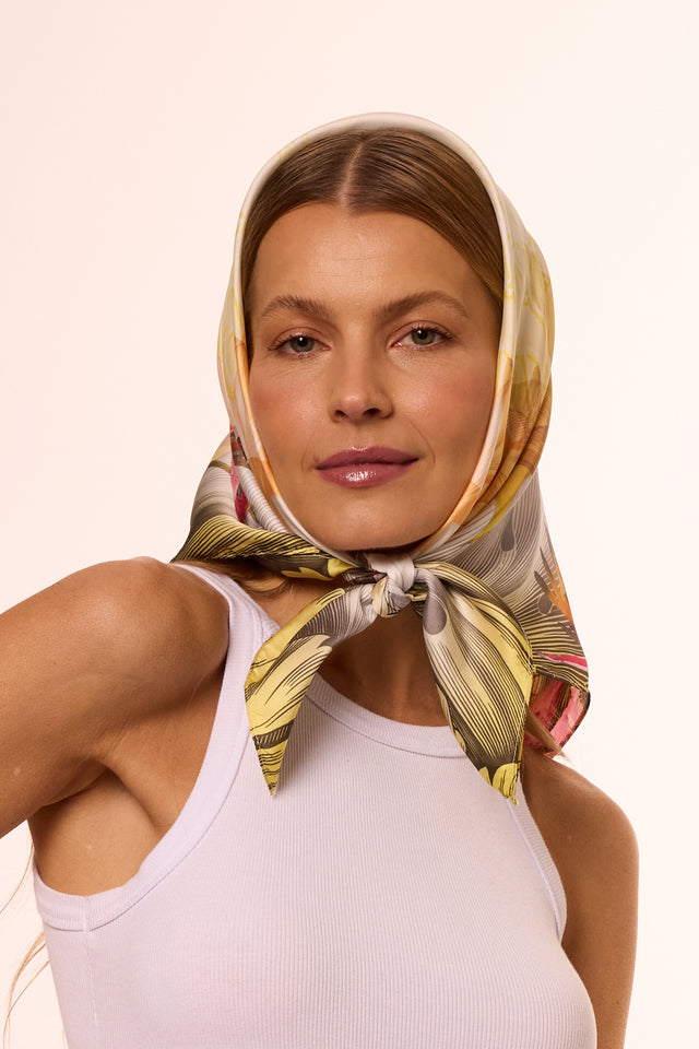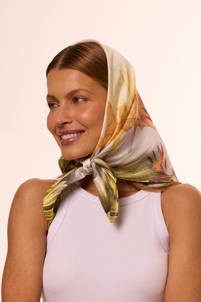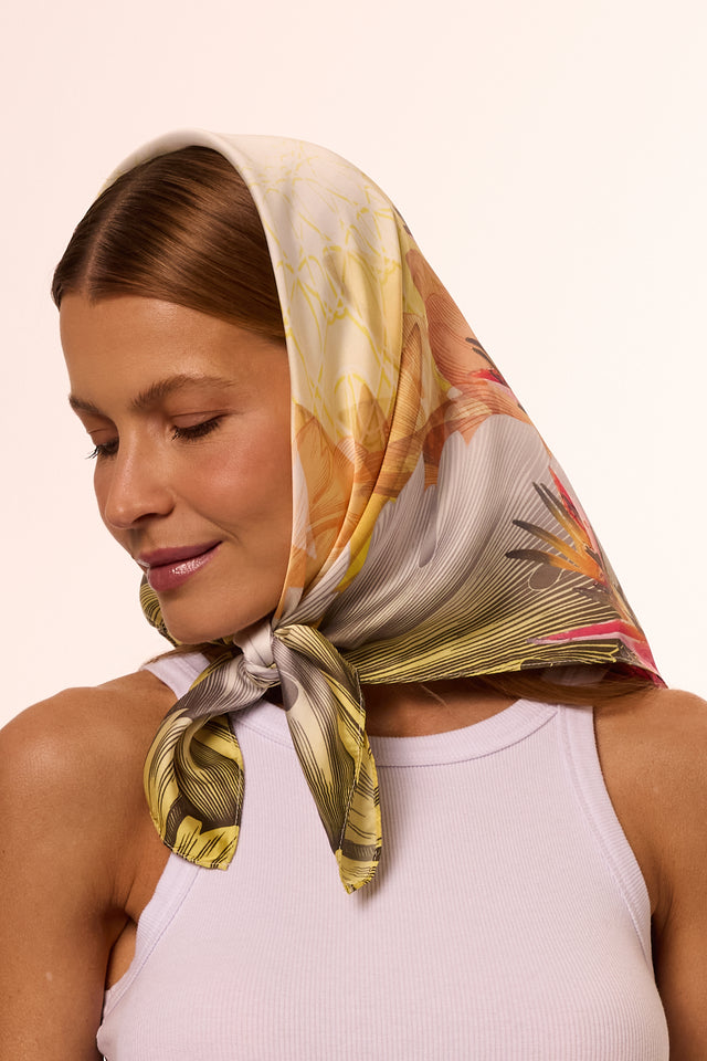 Lenço Helicônia em cetim de poliéster | 70x70cm