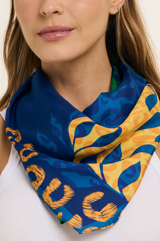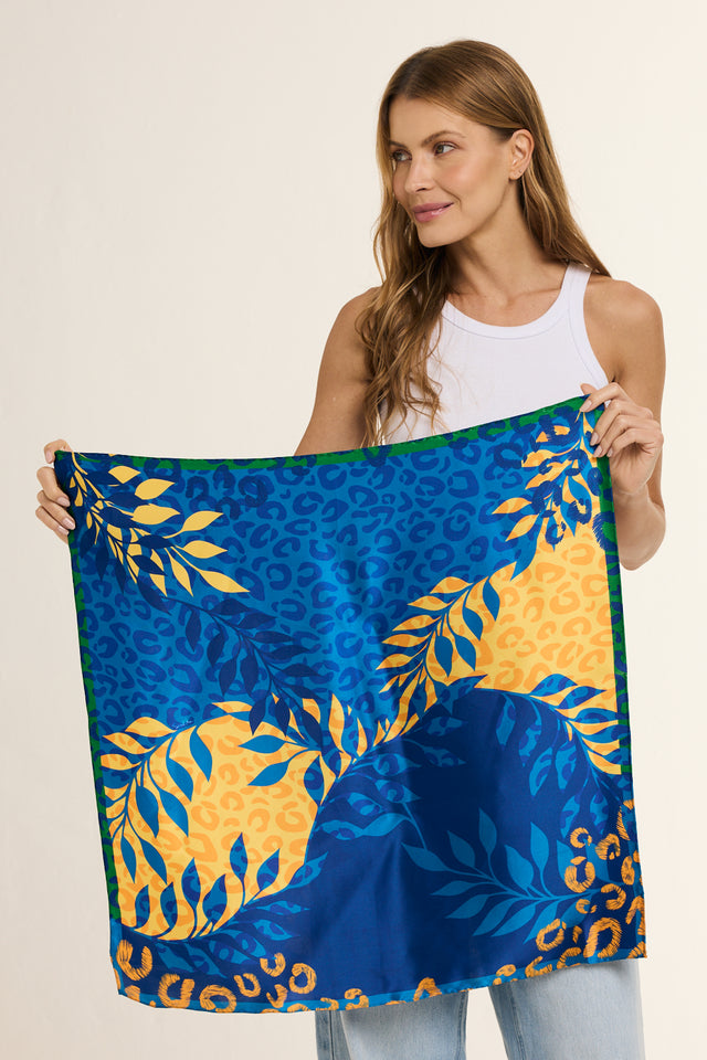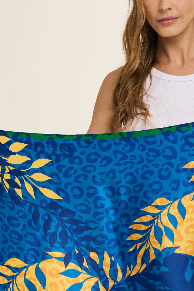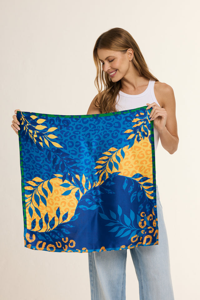 Lenço Brasil Animal azul em cetim de seda | 65x65cm