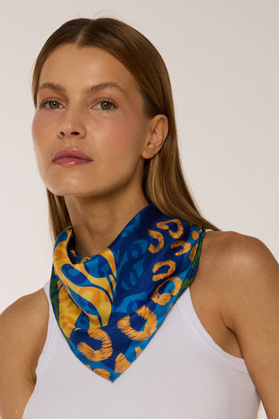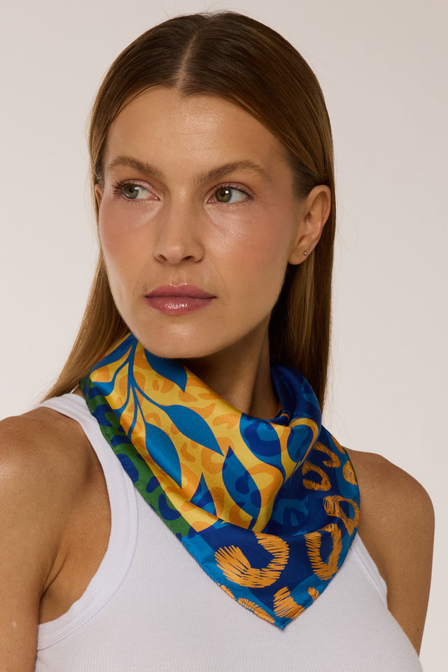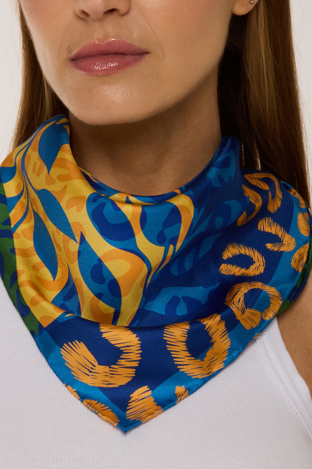 Lenço Brasil Animal azul em twill de seda | 65x65cm